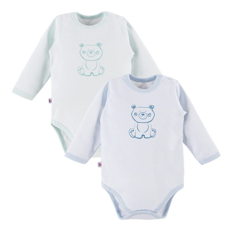 2er-Pack langärmelige Babybodys aus der Big Bear Kollektion ist ein praktisches und bequemes Set für die Kleinsten. Das Set enthält zwei Bodys mit einem niedlichen Bärenmotiv – einer in Blau und der andere in Mint.