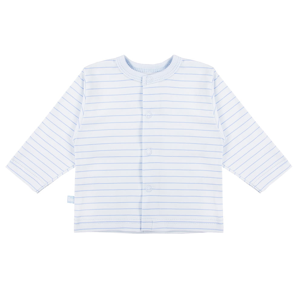 3er-Pack Baby-Jäckchen blau aus der Kollektion „Tiny”, genäht aus weichem und angenehm anzufassendem elastischem Baumwollstrick. Hergestellt aus dünnerer Baumwolle als unsere Standardkollektionen, sorgt der Elasthan-Zusatz für Komfort beim Anziehen des Babys. Das 3er-Pack enthält 3 Baby-Jäckchen, die in der Mitte zu knöpfen sind. Mehrfachpacks sind sehr praktisch, wenn Sie die Erstausstattung für Ihr Baby zusammenstellen. Zu den Jäckchen passen ideal Schlafstrampler oder Halbstrampler aus derselben Kollektion. Die Ärmel des Jäckchens sind umgeschlagen. Baby-Jäckchen eignen sich ideal für die ersten Lebensmonate des Kindes und bilden zusammen mit Baby-Schlafstramplern ein perfektes Outfit für unterwegs. Die Babykleidung von Eevi wird mit Sorgfalt für den Komfort und die Sicherheit der Haut Ihres Kindes hergestellt. Warum vertrauen wir der Marke Eevi seit Jahren so sehr? Die Produkte werden mit Sorgfalt und unter Verwendung von Materialien höchster Qualität genäht. Bei der Herstellung von Babykleidung verwenden wir ausschließlich ökologische Farben, die für die Haut von Kindern und Babys unbedenklich sind. Die Stickereien in unseren Produkten sind von innen gesichert, damit sie die empfindliche Haut des Kindes nicht reizen. Alle Druckknöpfe und Verschlüsse, die wir in unseren Produkten verwenden, sind nickelfrei. Die von uns angebotenen Jäckchen sind zertifiziert: „Sicher für Kinder” „Sicher für Säuglinge” Zusammensetzung: 95 % hochwertige Baumwolle, 5 % Elasthan für mehr Komfort Alter des Kindes: von 0 bis 6 Monaten PRODUKT 100 % POLNISCH