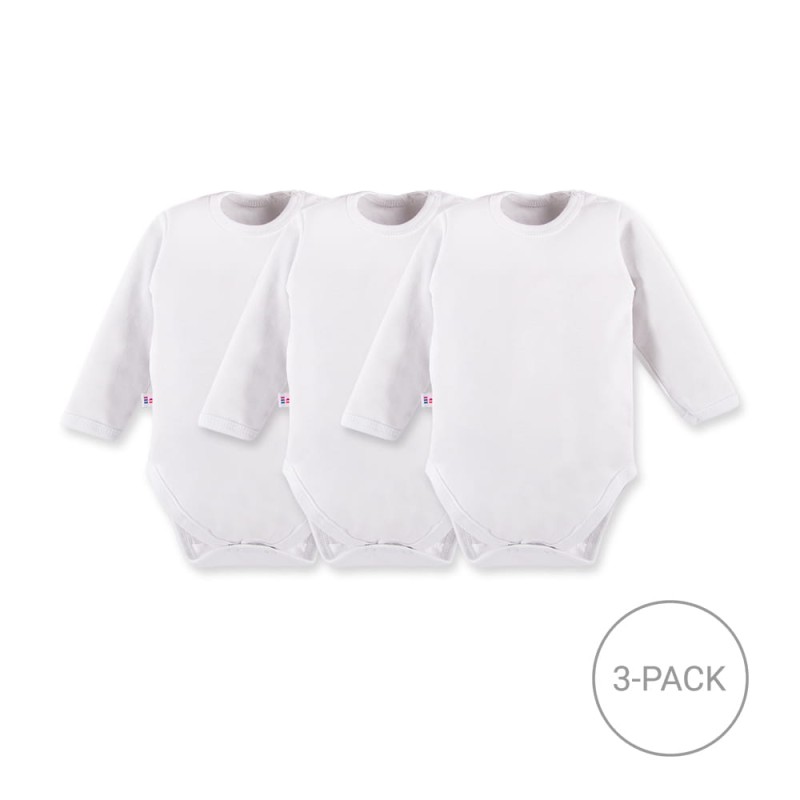 3er-Pack klassische weiße Babybodys mit langen Ärmeln – Kollektion White Basic