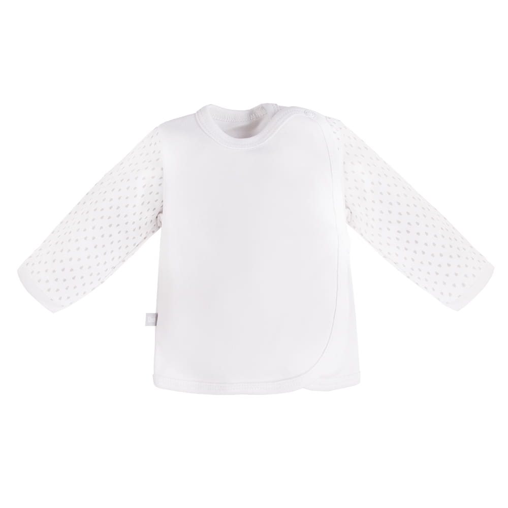 Baby T-Shirt aus der Newborn Kollektion besteht aus weichem und angenehm zu berührendem Stoff mit dezenten Drucken. Der Schnitt ermöglicht vollständiges Öffnen mit Druckknöpfen, was es funktional und bequem für den täglichen Gebrauch macht.
