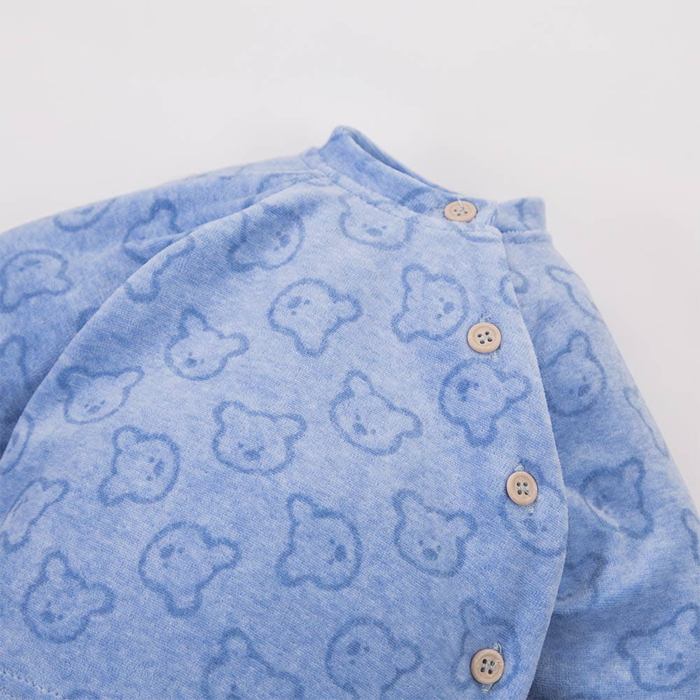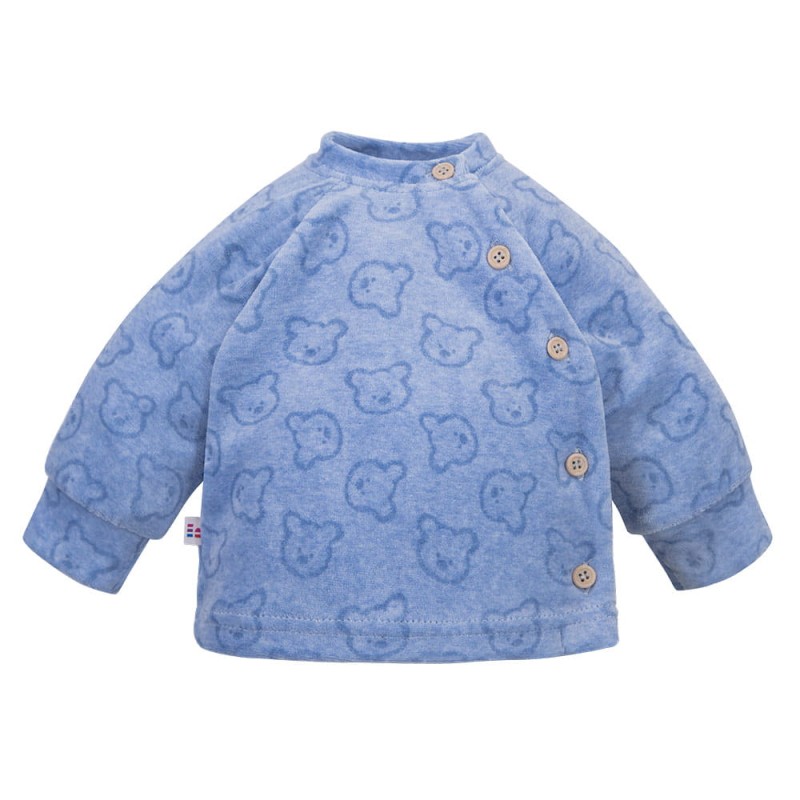 Baby-Jäckchen seitlich geknöpft blau mit Bären aus Velours