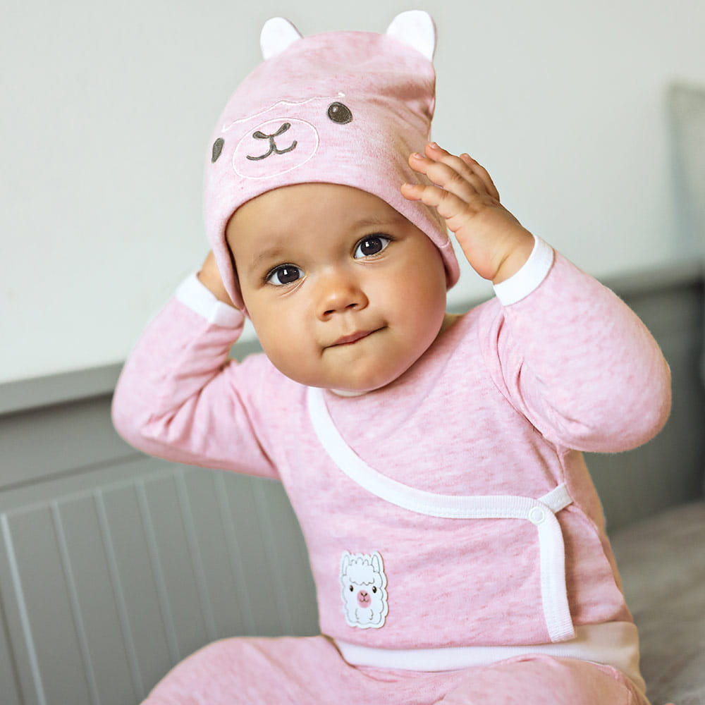 Mütze mit Futter aus der Kollektion „Baby Love“, genäht aus weichem und angenehm anzufassendem meliertem Baumwollstrick. Auf der Vorderseite der Mütze befindet sich eine niedliche Stickerei mit einem Tiermotiv. Die Stickerei ist so gestaltet, dass sie die empfindliche Haut des Kindes nicht reizt. Baumwollmützen sind ein Muss in jeder Babyausstattung. In den ersten Lebensmonaten des Babys sollten die Ohren aufgrund der geringeren Widerstandsfähigkeit bedeckt werden. Die Babykleidung von Eevi wird mit Sorgfalt für den Komfort und die Sicherheit der Haut Ihres Kindes hergestellt. Warum vertrauen wir der Marke Eevi seit Jahren so sehr? Die Produkte werden mit Präzision und unter Verwendung von Materialien höchster Qualität genäht. Bei der Herstellung von Babykleidung verwenden wir ausschließlich ökologische Farben, die für die Haut von Kindern und Babys unbedenklich sind. Die Stickereien in unseren Produkten sind von innen gesichert, damit sie die empfindliche Haut des Kindes nicht reizen. Alle Druckknöpfe und Verschlüsse, die wir in unseren Produkten verwenden, sind nickelfrei. Die von uns angebotene Mütze ist zertifiziert: „Sicher für Kinder” „Sicher für Babys” Zusammensetzung: 100 % hochwertige Baumwolle Alter des Kindes: von 0 bis 6 Monaten PRODUKT 100 % POLNISCH