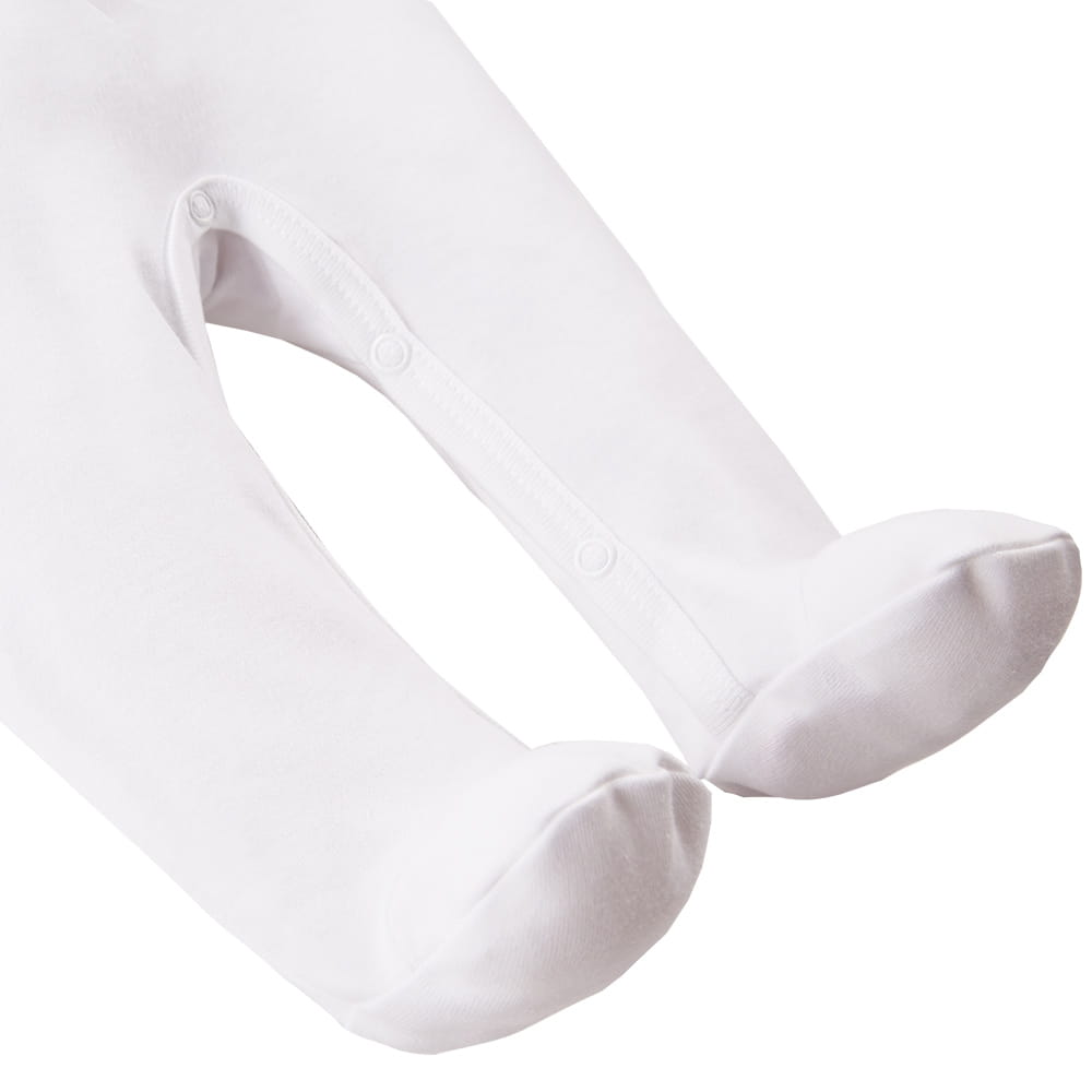 Der Schlafstrampler ist aus weichem und angenehmem weißem Strickstoff genäht. Der Schnitt ermöglicht ein vollständiges Aufknöpfen, wodurch das Kleidungsstück funktional und bequem ist. Mit weicher Paspelierung verarbeitet. Die in unseren Produkten verwendeten Druckknöpfe sind nickelfrei. Hergestellt in Polen, mit dem Zertifikat „Sicher für Kinder”. 100 % Baumwolle