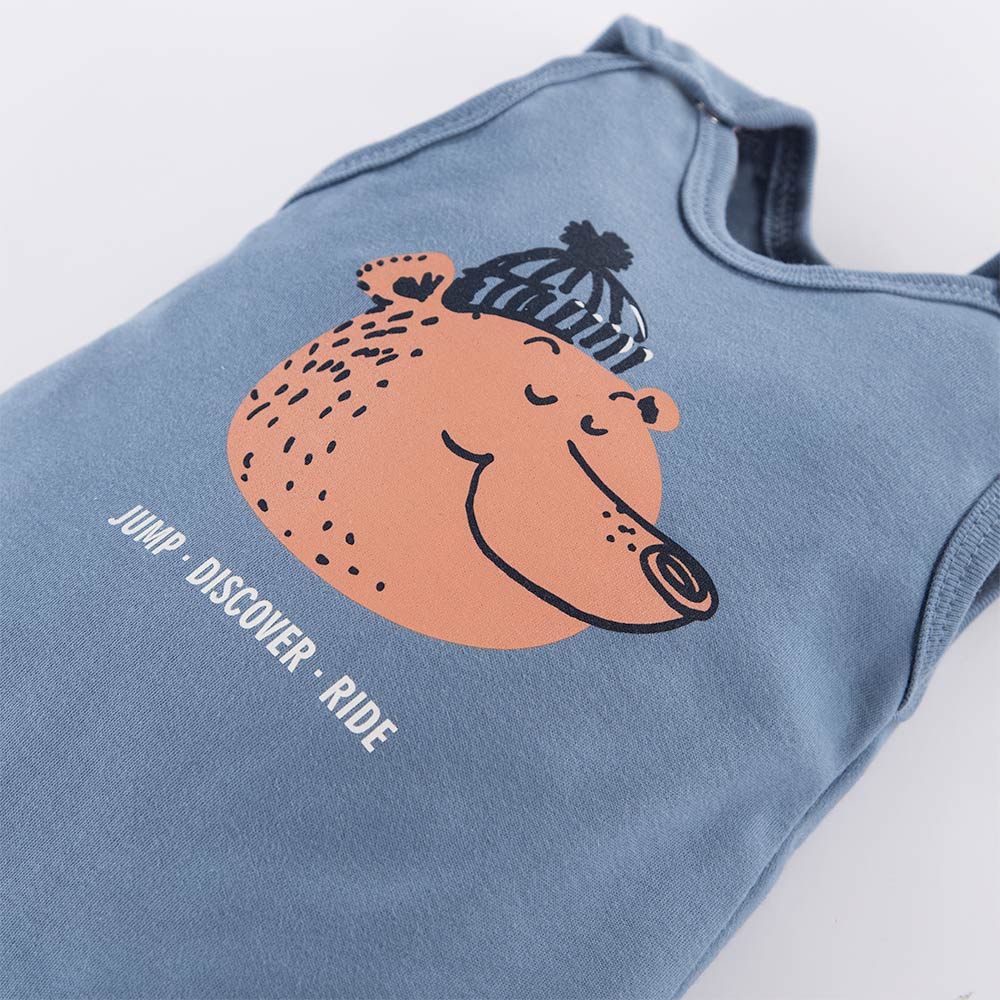 Blauer Baby-Schlafstrampler, ideal für die ersten Lebensmonate des Kindes. Schlafstrampler sind eine gute Wahl für die Babyausstattung. Sie bedecken die Füße des Babys. Der Öffnungsverschluss im Schritt ist eine große Erleichterung für Mütter. Der Schlafstrampler lässt sich schnell öffnen und die Windel wechseln. Alter des Kindes: Von 0 bis 6 Monaten Kollektion: Jump Material: 100 % hochwertige Baumwolle Struktur/Materialart: Strickware Pflegehinweise: Maschinenwäsche bei 40 °C, nicht im Wäschetrockner trocknen Muster: Einfarbig – blau Ärmel: Keine Verschluss: Druckknöpfe Verarbeitung: Weiche Paspel Herkunft: 100 % polnisches Produkt Zertifikate: „Sicher für Kinder”, „Sicher für Babys” Die Babykleidung von Eevi wird mit Blick auf den Komfort und die Sicherheit der Haut Ihres Kindes hergestellt. Warum vertrauen wir der Marke Eevi seit Jahren so sehr? Die Produkte werden mit Sorgfalt und unter Verwendung von Materialien höchster Qualität genäht. Bei der Herstellung von Babykleidung verwenden wir ausschließlich ökologische Farben, die für die Haut von Kindern und Babys unbedenklich sind. Die Stickereien in unseren Produkten sind von innen gesichert, damit sie die empfindliche Haut des Kindes nicht reizen. Alle Druckknöpfe und Verschlüsse, die wir in unseren Produkten verwenden, sind nickelfrei.