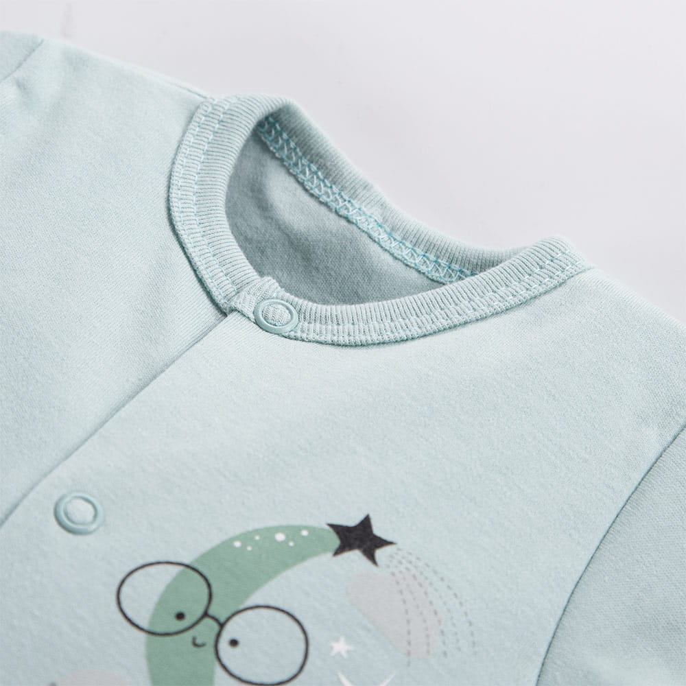 Der praktische Schnitt ermöglicht ein vollständiges Öffnen, wodurch das An- und Ausziehen sowie das Wickeln besonders bequem sind. Der Schlafanzug ist mit einer weichen Einfassung versehen, die den Tragekomfort erhöht. Baby-Schlafanzüge eignen sich ideal für die ersten Lebensmonate und können sowohl als Schlafbekleidung als auch als Ausgeh-Outfit getragen werden.