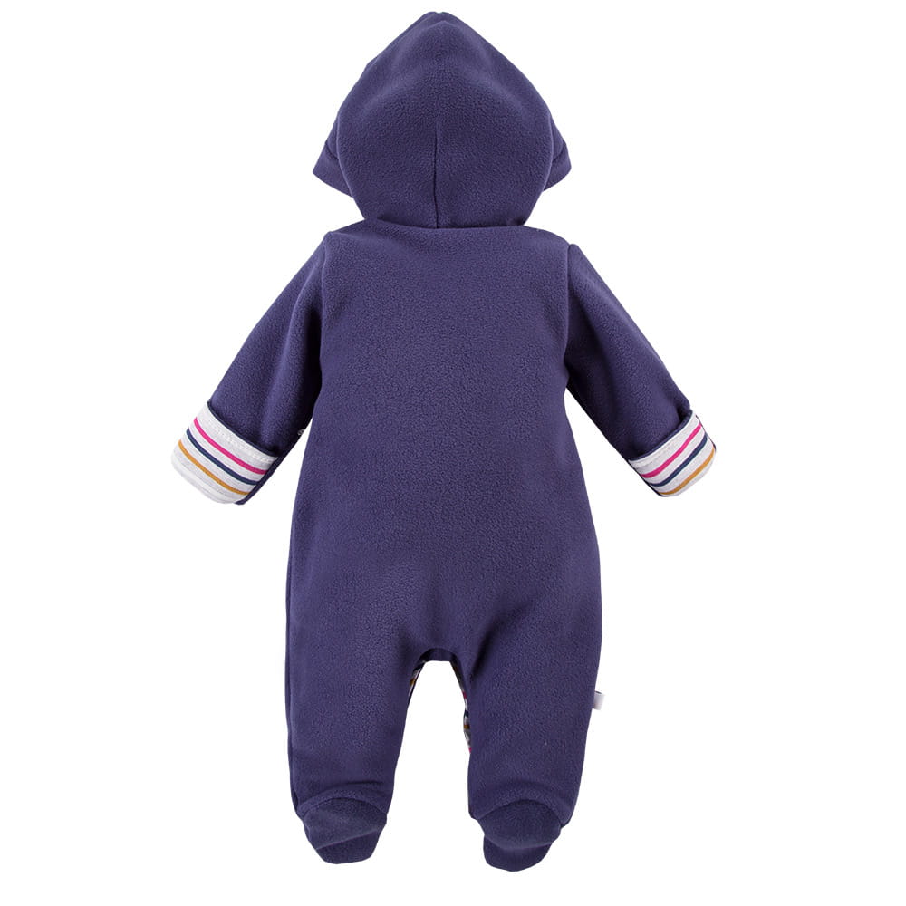 Baby-Strampler in Marineblau aus warmem Fleece. Das Futter des Stramplers besteht aus 100 % Baumwolle. Der Strampler mit Kapuze ist ideal für die Entlassung aus dem Krankenhaus in den kühlen Monaten. In der Babyausstattung für Kinder, die im Winter und Herbst geboren werden, ist er ein Muss. Alter des Kindes: Von 0 bis 11 Monaten Kollektion: RUN&FUN Material: Obermaterial: Fleece – 100 % Polyester, Futter: 100 % hochwertige Baumwolle Struktur/Materialart: Strickware Pflegehinweise: Maschinenwäsche bei 40 °C, nicht im Wäschetrockner trocknen Muster: Farbe: Marineblau – Futter: grau-rosa gestreift Verschluss: Druckknöpfe Verarbeitung: Kratzhandschuh – kann die Hände bedecken Herkunft: 100 % polnisches Produkt Zertifikate: „Sicher für Kinder”, „Sicher für Babys” Die Babykleidung von Eevi wird mit Blick auf den Komfort und die Sicherheit der Haut Ihres Kindes hergestellt. Warum vertrauen wir der Marke Eevi seit Jahren so sehr? Die Produkte werden mit Sorgfalt und unter Verwendung von Materialien höchster Qualität genäht. Bei der Herstellung von Babykleidung verwenden wir ausschließlich ökologische Farben, die für die Haut von Kindern und Babys unbedenklich sind. Die Stickereien in unseren Produkten sind von innen gesichert, damit sie die empfindliche Haut des Kindes nicht reizen. Alle Druckknöpfe und Verschlüsse, die wir in unseren Produkten verwenden, sind nickelfrei.