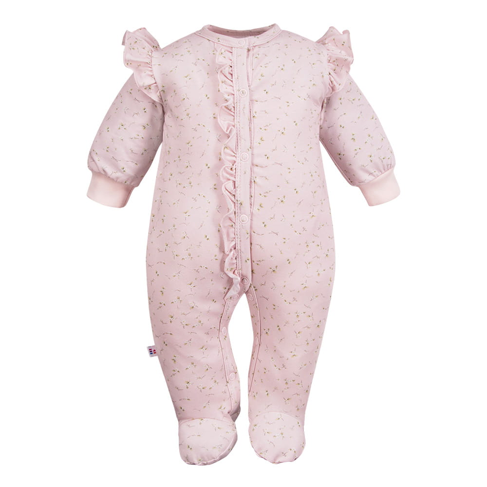 Baby-Strampler mit Füßchen, rosa mit Blümchen