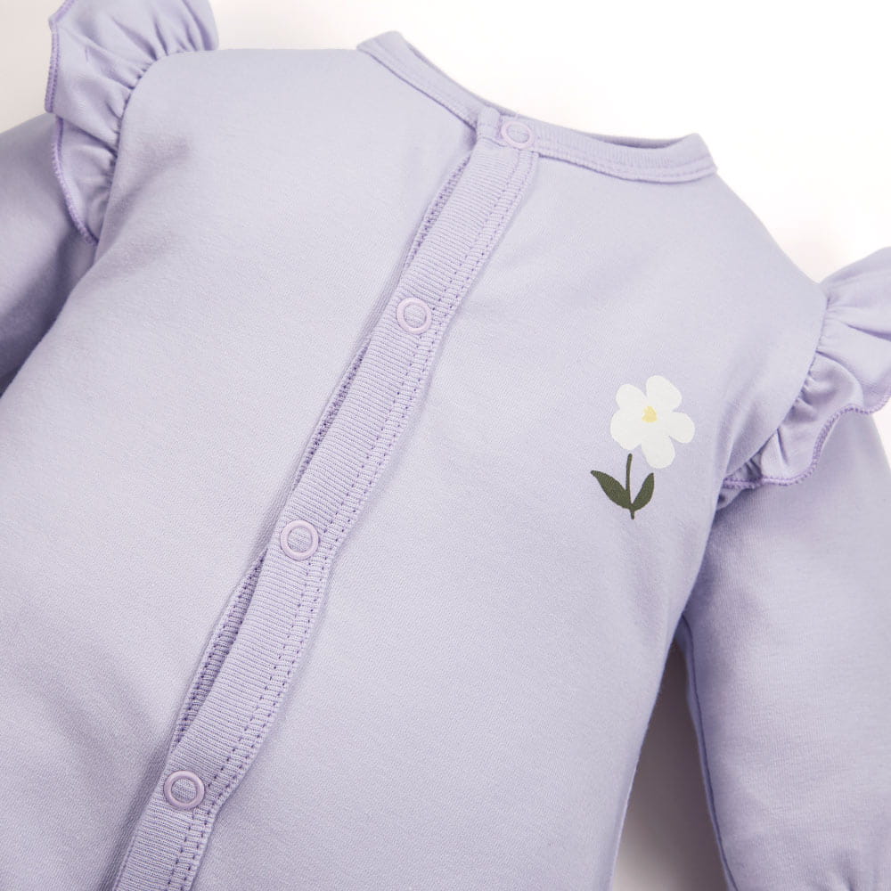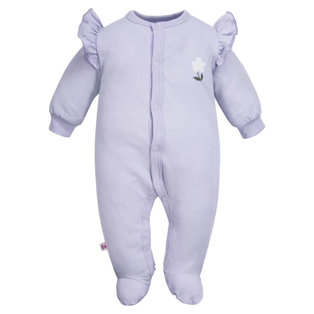 Baby-Strampler mit Füßchen. Baby-Strampler mit Füßchen sind ein Muss in jeder Babyausstattung. Ideal für Kinder, die sich nachts im Schlaf aufdecken. In unserem Shop sind Strampler bis Größe 104 erhältlich. Mütter wählen meist Strampler für ihre Kleinen. Baby-Strampler sind sowohl für Mütter als auch für Kinder sehr bequem anzuziehen. Alter des Kindes: Von 0 bis 6 Monaten Kollektion: Meadow Material: 100 % hochwertige Baumwolle Struktur/Materialart: Strickware Pflegehinweise: Maschinenwäsche bei 40 °C, nicht im Wäschetrockner trocknen Muster: Violett – mit Blümchen Ärmel: Langarm Verschluss: Über die gesamte Länge Verarbeitung: Weiche Paspel Herkunft: 100 % polnisches Produkt Zertifikate: „Sicher für Kinder”, „Sicher für Babys” Die Babykleidung von Eevi wird mit Blick auf den Komfort und die Sicherheit der Haut Ihres Kindes hergestellt. Warum vertrauen wir der Marke Eevi seit Jahren so sehr? Die Produkte werden mit Sorgfalt und unter Verwendung von Materialien höchster Qualität genäht. Bei der Herstellung von Babykleidung verwenden wir ausschließlich ökologische Farben, die für die Haut von Kindern und Babys unbedenklich sind. Die Stickereien in unseren Produkten sind von innen gesichert, damit sie die empfindliche Haut des Kindes nicht reizen. Alle Druckknöpfe und Verschlüsse, die wir in unseren Produkten verwenden, sind nickelfrei.