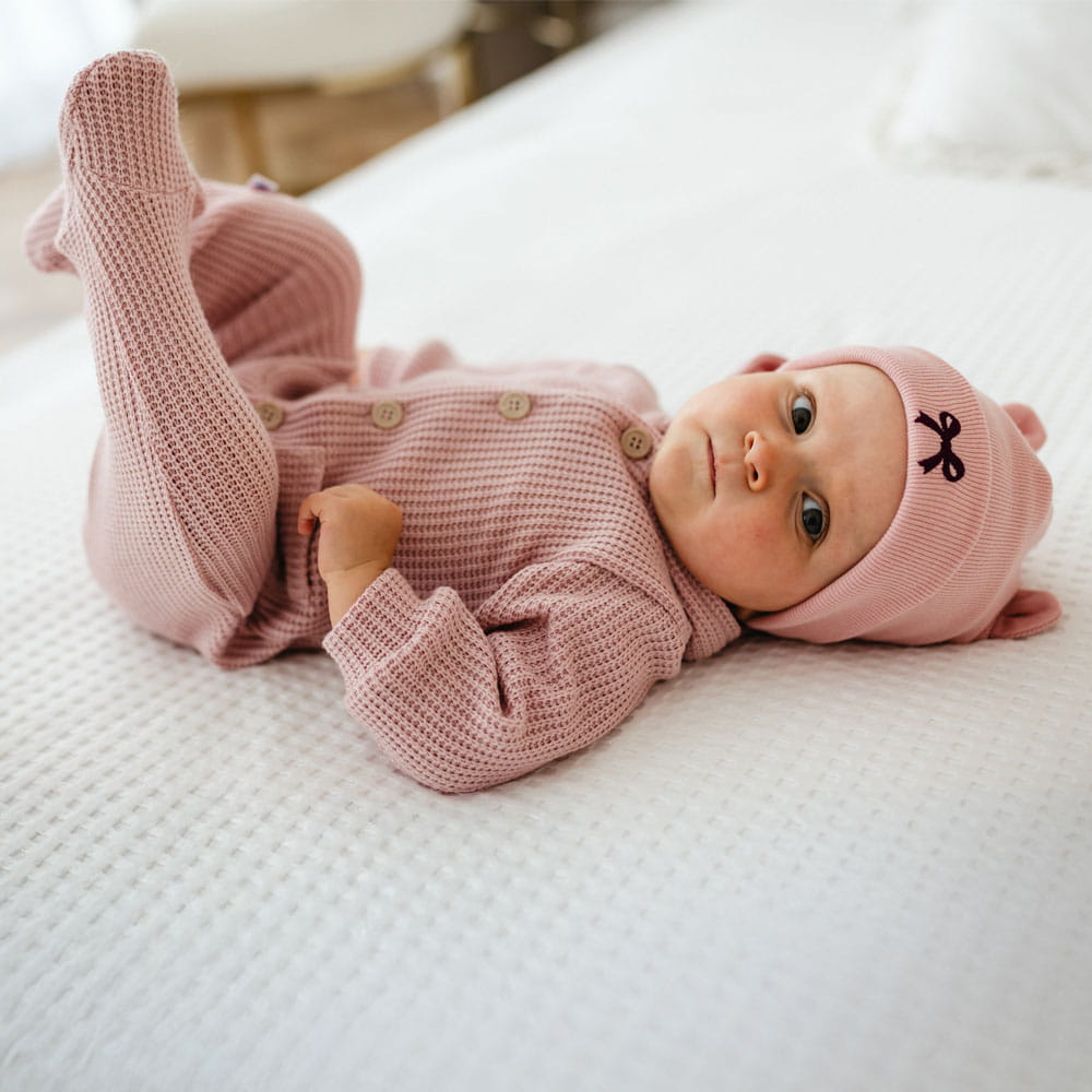 Baby-Strampler mit Pullover, rosa – Kollektion Fluffy Tails Der Baby-Strampler mit Pullover aus der Kollektion Fluffy Tails ist ein einzigartiges Modell, das speziell für Babys ab den ersten Lebenstagen entworfen wurde. Er ist aus weichem Waffelpiqué-Strick gefertigt und vereint Stil, Komfort und Funktionalität. Die zarte rosa Farbe und der klassische Schnitt machen ihn zur perfekten Wahl sowohl für den Alltag als auch für besondere Anlässe. Warum sollten Sie sich für Baby-Strampler von Eevi entscheiden? Hochwertiges Garn – angenehm für die Haut des Kindes. Waffelstruktur – sorgt für Weichheit und Luftdurchlässigkeit. Knopfverschluss – bequem und praktisch bei der täglichen Pflege. Universeller Stil – passt zu vielen Anlässen. Hergestellt in Polen – Garantie für Liebe zum Detail und hohe Verarbeitungsqualität. Produktmerkmale: Alter des Kindes: 0 bis 6 Monate Größen: 56, 62, 68 Kollektion: Fluffy Tails Farbe: Rosa Material: 50 % Viskose, 25 % Lyocell, 25 % Nylon Materialart: Strickstoff – Waffelstruktur Verschluss: Knöpfe vorne Herkunft: 100 % polnisches Produkt