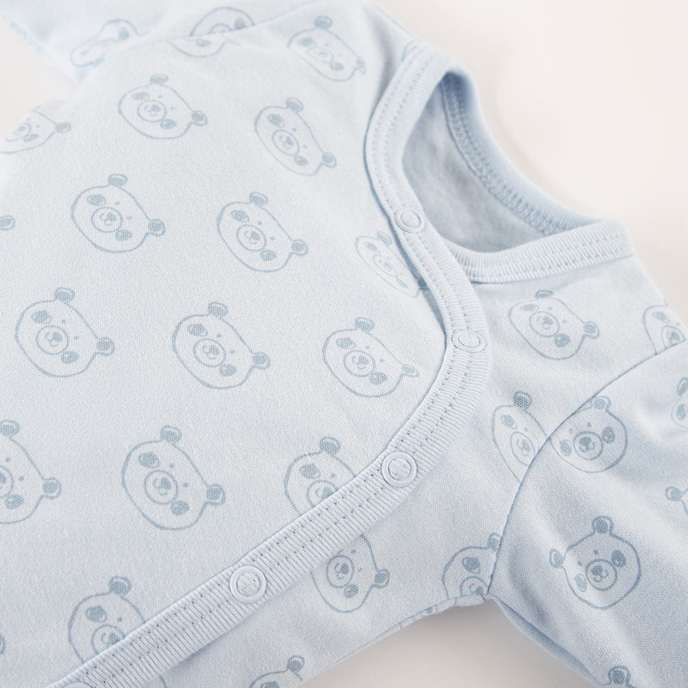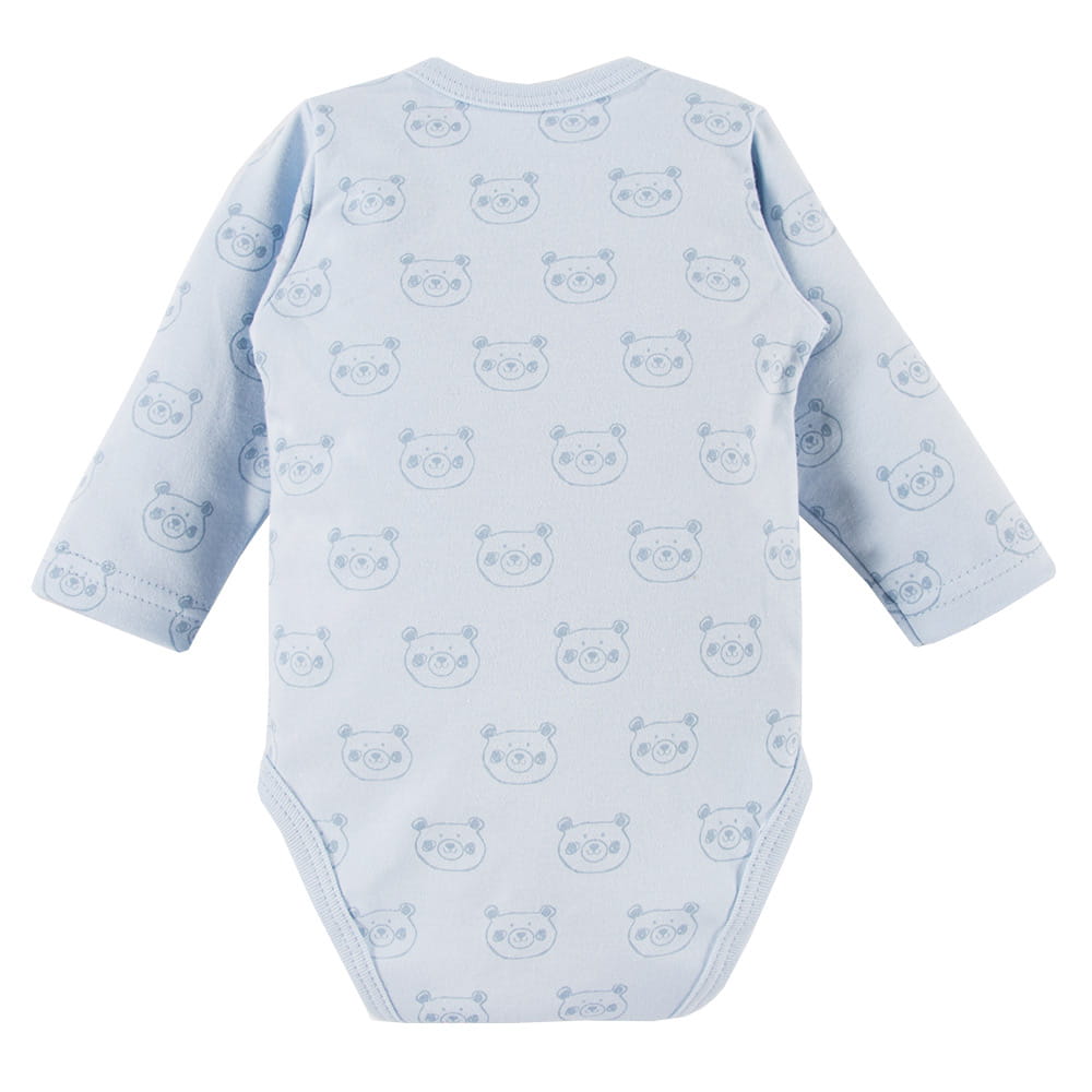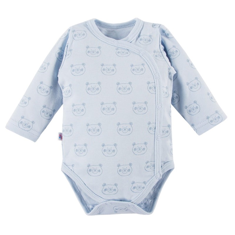 Baby-Body mit Knöpfen. Baby-Bodys eignen sich ideal für Kinder bis zu 3 Jahren. Mütter wählen meist Body für ihre Kleinen. Sie sind ein Muss in jeder Baby- oder Kindergarteneinrichtung. Alter des Kindes: Von 0 bis 6 Monaten Kollektion: Big Bear Material: 100 % hochwertige Baumwolle Struktur/Materialart: Strickware Pflegehinweise: Maschinenwäsche bei 40 °C, nicht im Wäschetrockner trocknen Muster: Bärenprint – Farbe Blau Ärmel: Langarm Verschluss: Wickelverschluss Verarbeitung: Weiche Paspel Herkunft: 100 % polnisches Produkt Zertifikate: „Sicher für Kinder”, „Sicher für Babys” Die Babykleidung von Eevi wird mit Blick auf den Komfort und die Sicherheit der Haut Ihres Kindes hergestellt. Warum vertrauen wir der Marke Eevi seit Jahren so sehr? Die Produkte werden mit Sorgfalt und unter Verwendung von Materialien höchster Qualität genäht. Bei der Herstellung von Babykleidung verwenden wir ausschließlich ökologische Farben, die für die Haut von Kindern und Babys unbedenklich sind. Die Stickereien in unseren Produkten sind von innen gesichert, damit sie die empfindliche Haut des Kindes nicht reizen. Alle Druckknöpfe und Verschlüsse, die wir in unseren Produkten verwenden, sind nickelfrei.