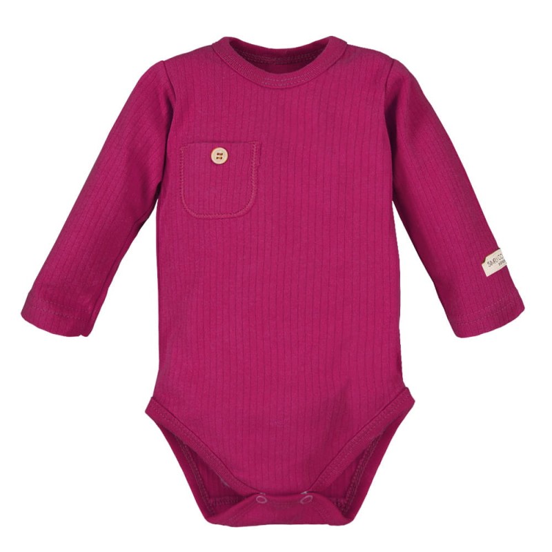 Babybody mit Tasche aus der Kollektion „Simply Comfy“, genäht aus weichem und angenehmem Baumwollstrick mit Rippmuster. Auf der Vorderseite des Babybodys befindet sich eine niedliche Tasche mit Knopf. Der Schnitt ermöglicht das Öffnen an den Schultern und im Schritt, wodurch der Body funktional und bequem ist. Der Body ist mit einem weichen Saum versehen. Babybodys eignen sich ideal für die ersten Lebensmonate des Kindes und gehören zu den von Müttern am häufigsten gewählten Produkten. Die Babykleidung von Eevi wird mit Sorgfalt für den Komfort und die Sicherheit der Haut Ihres Kindes hergestellt. Warum vertrauen Mütter der Marke Eevi seit Jahren so sehr? Die Produkte werden mit Präzision und unter Verwendung von Materialien höchster Qualität genäht. Bei der Herstellung von Babykleidung verwenden wir ausschließlich ökologische Farben, die für die Haut von Kindern und Babys unbedenklich sind. Die Stickereien in unseren Produkten sind von innen gesichert, damit sie die empfindliche Haut des Kindes nicht reizen. Alle Druckknöpfe und Verschlüsse, die wir in unseren Produkten verwenden, sind nickelfrei. Die von uns angebotenen Body sind zertifiziert: „Sicher für Kinder” „Sicher für Babys” Material: 100 % hochwertige Baumwolle Alter des Kindes: von 9 Monaten bis 3 Jahren PRODUKT 100 % POLNISCH