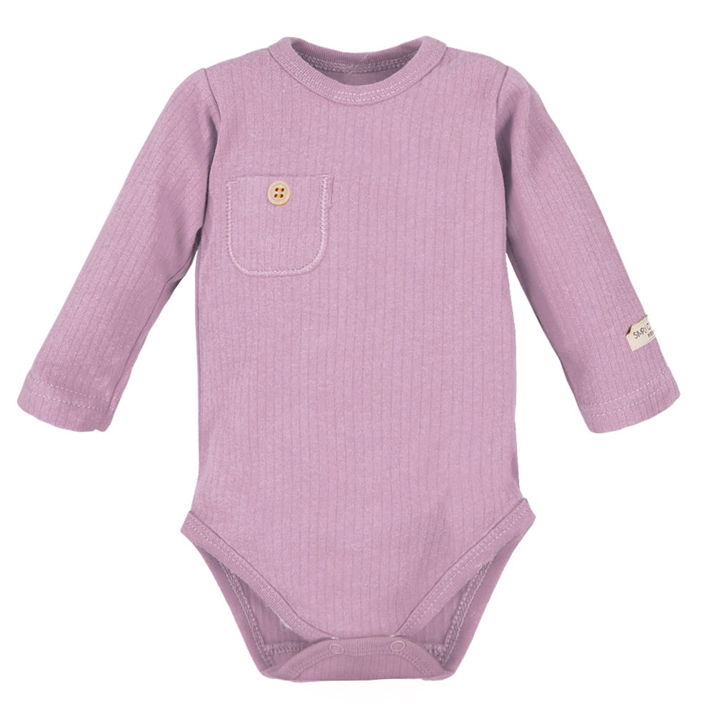 Babybody mit Tasche aus der Kollektion „Simply Comfy“, genäht aus weichem und angenehmem Baumwollstrick mit Rippmuster. Auf der Vorderseite des Babybodys befindet sich eine niedliche Tasche mit Knopf. Der Schnitt ermöglicht das Öffnen an den Schultern und im Schritt, wodurch der Body funktional und bequem ist. Der Body ist mit einem weichen Saum versehen. Babybodys eignen sich ideal für die ersten Lebensmonate des Kindes und gehören zu den von Müttern am häufigsten gewählten Produkten. Die Babykleidung von Eevi wird mit Sorgfalt für den Komfort und die Sicherheit der Haut Ihres Kindes hergestellt. Warum vertrauen Mütter der Marke Eevi seit Jahren so sehr? Die Produkte werden mit Präzision und unter Verwendung von Materialien höchster Qualität genäht. Bei der Herstellung von Babykleidung verwenden wir ausschließlich ökologische Farben, die für die Haut von Kindern und Babys unbedenklich sind. Die Stickereien in unseren Produkten sind von innen gesichert, damit sie die empfindliche Haut des Kindes nicht reizen. Alle Druckknöpfe und Verschlüsse, die wir in unseren Produkten verwenden, sind nickelfrei. Die von uns angebotenen Body sind zertifiziert: „Sicher für Kinder” „Sicher für Babys” Material: 100 % hochwertige Baumwolle Alter des Kindes: von 9 Monaten bis 3 Jahren PRODUKT 100 % POLNISCH