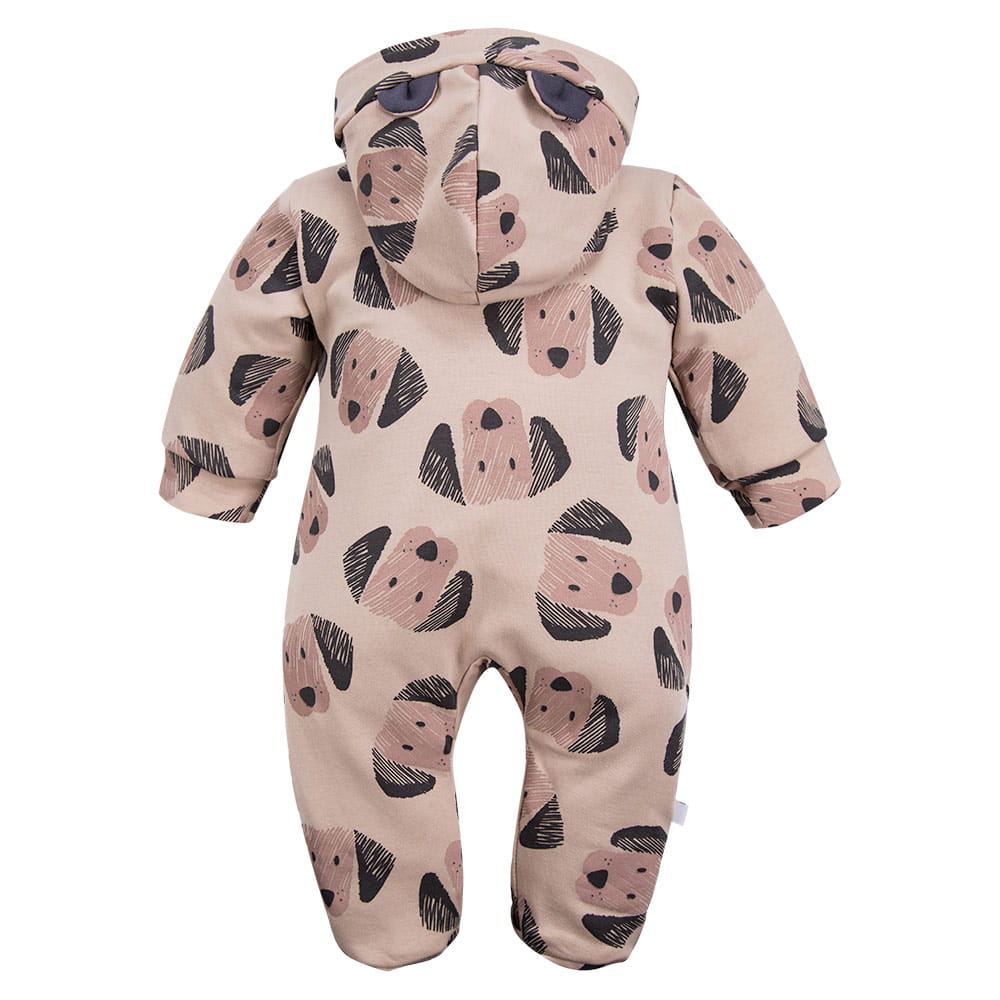 Babyoverall mit Kapuze, beige, mit Hunde-Motiv