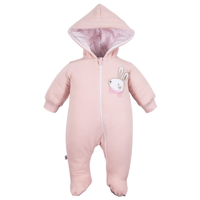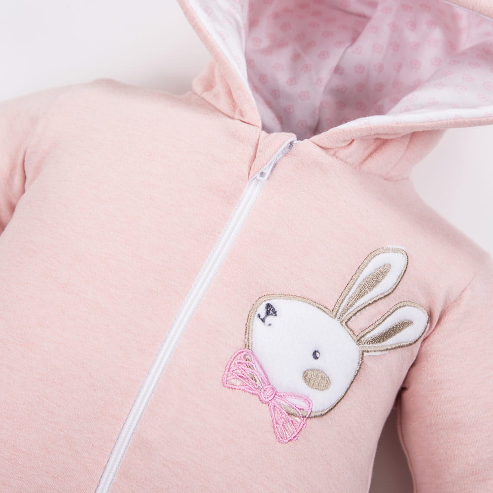 Babyoverall mit Kapuze, rosa, mit Hasenmotiv