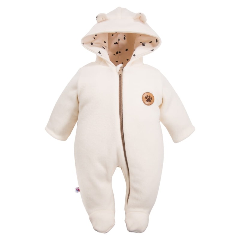 Der ecrufarbene Baby Overall mit Kapuze ist eine zeitlose Wahl für kühlere Herbst- und Wintertage. Er besteht aus weichem, wärmendem Fleece und bietet Ihrem Baby hohen Tragekomfort von den ersten Lebenstagen an.