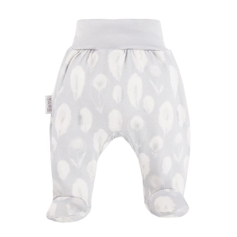 Bambus-Halbstrampler mit grauen Federn
