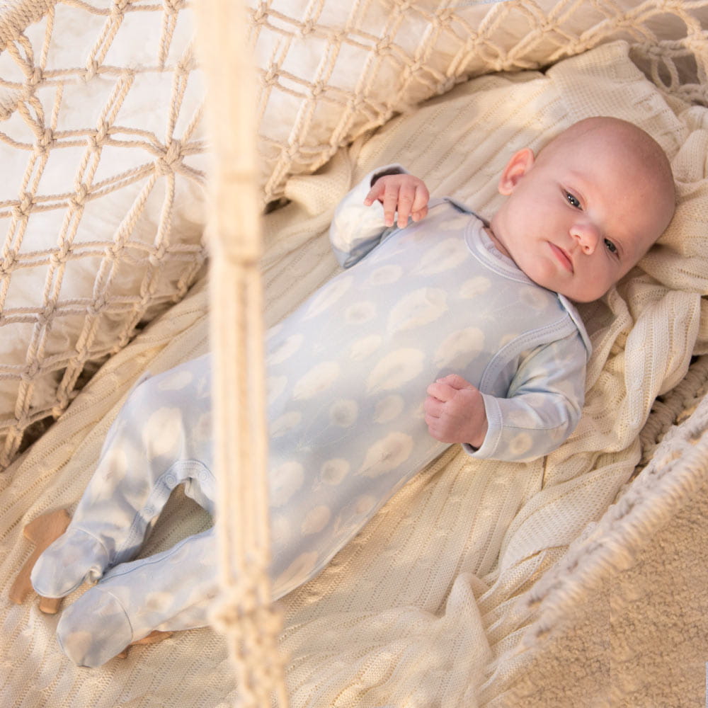 Bambus-Schlafstrampler mit Federn grau