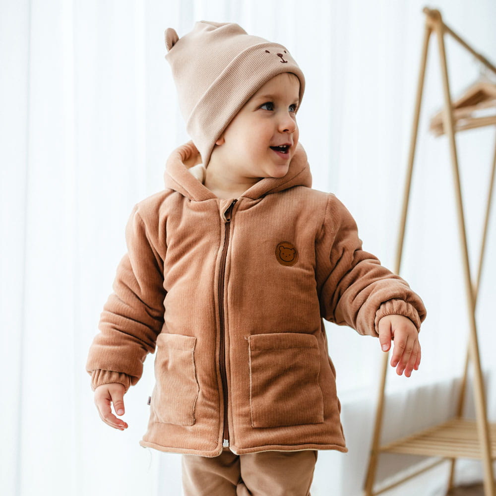 Beige Kinder-Winterjacken mit Kapuze – Kollektion Beary Cool
