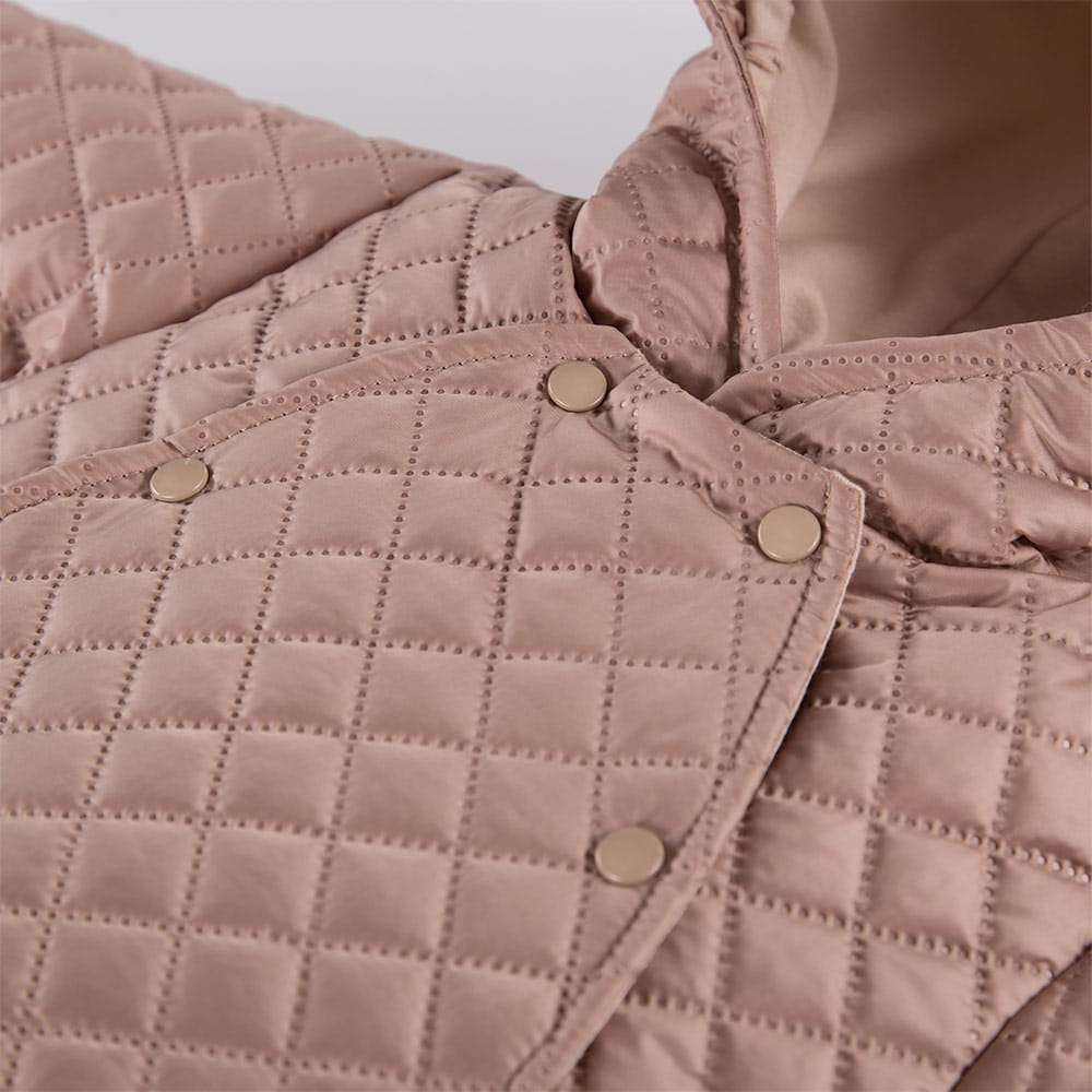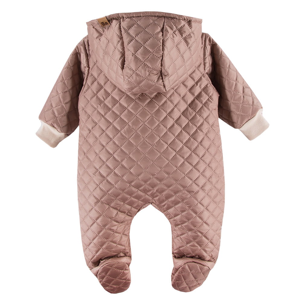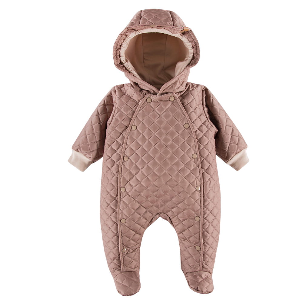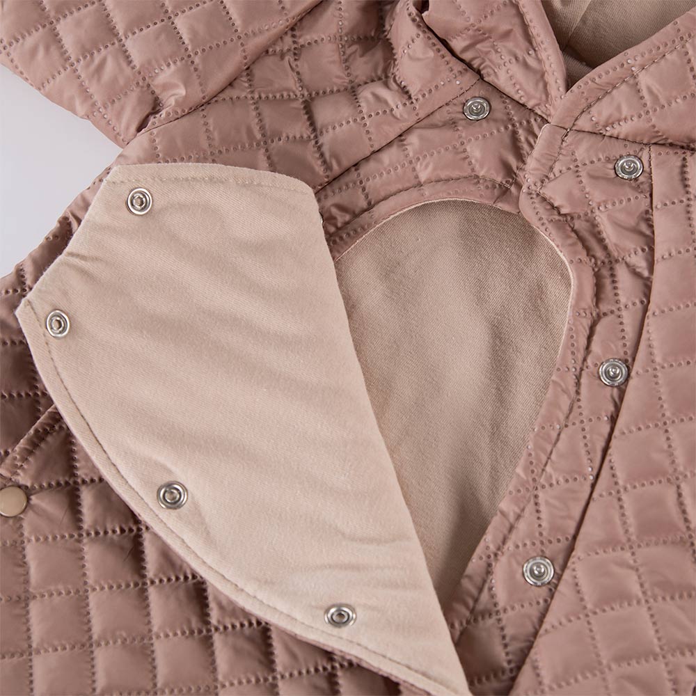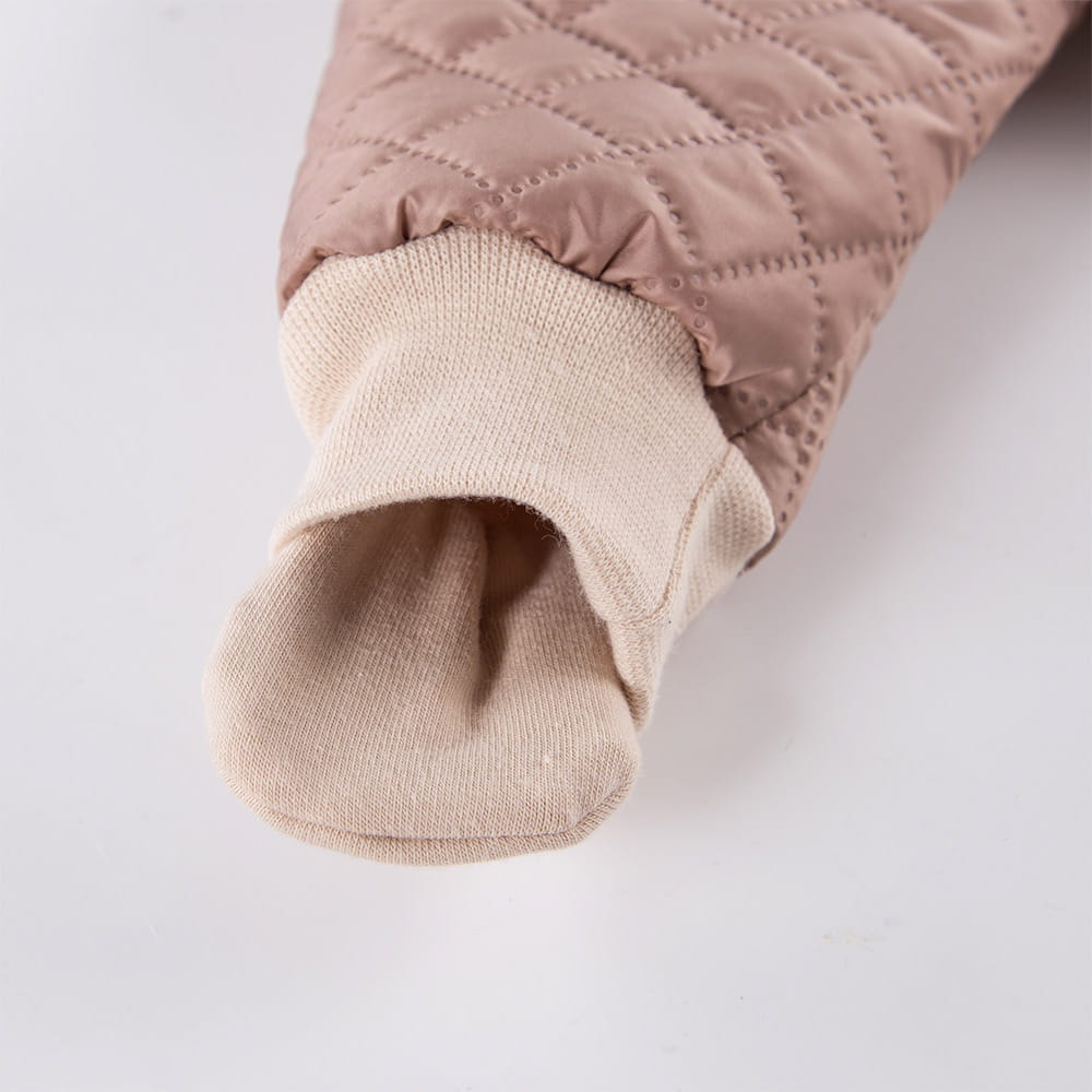 Beigefarbener, gesteppter Übergangs-Overall mit Kapuze