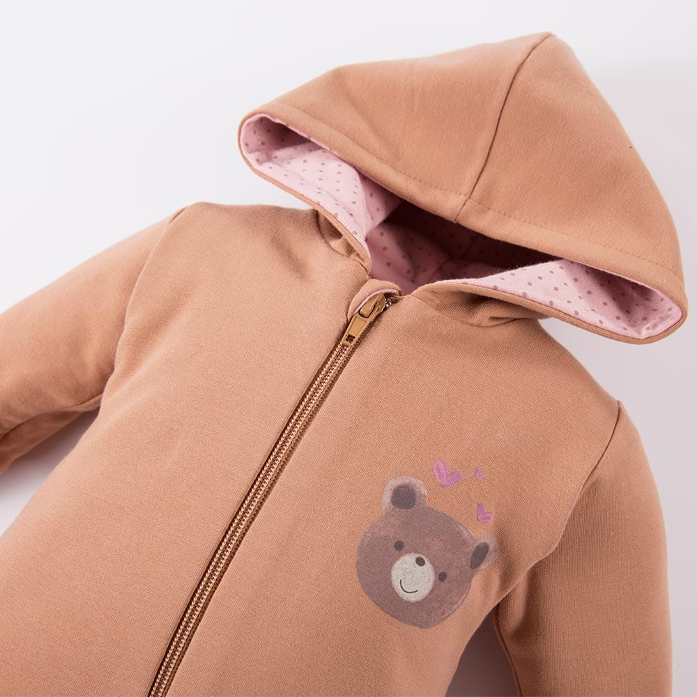 Beigefarbener Overall für Kinder mit Kapuze. Overalls für Kinder mit Kapuze eignen sich hervorragend für den Krankenhausaufenthalt. Der Overall wird unter dem Winteroverall angezogen. Er bildet eine zusätzliche wärmende Schicht. Ein Overall mit Kapuze ist ein Muss in jeder Babyausstattung. Alter des Kindes: Von 0 bis 6 Monaten Kollektion: Hearts&Bears Material: 100 % hochwertige Baumwolle Struktur/Materialart: Strickware Pflegehinweise: Maschinenwäsche bei 40 °C, nicht im Wäschetrockner trocknen Muster: Beige Ärmel: Langarm Verschluss: Durchgehender Reißverschluss Verarbeitung: Weicher Bündchen Herkunft: 100 % polnisches Produkt Zertifikate: „Sicher für Kinder”, „Sicher für Babys” Die Babykleidung von Eevi wird mit Blick auf den Komfort und die Sicherheit der Haut Ihres Kindes hergestellt. Warum vertrauen wir der Marke Eevi seit Jahren so sehr? Die Produkte werden mit Sorgfalt und unter Verwendung von Materialien höchster Qualität genäht. Bei der Herstellung von Babykleidung verwenden wir ausschließlich ökologische Farben, die für die Haut von Kindern und Babys unbedenklich sind. Die Stickereien in unseren Produkten sind von innen gesichert, damit sie die empfindliche Haut des Kindes nicht reizen. Alle Druckknöpfe und Verschlüsse, die wir in unseren Produkten verwenden, sind nickelfrei.