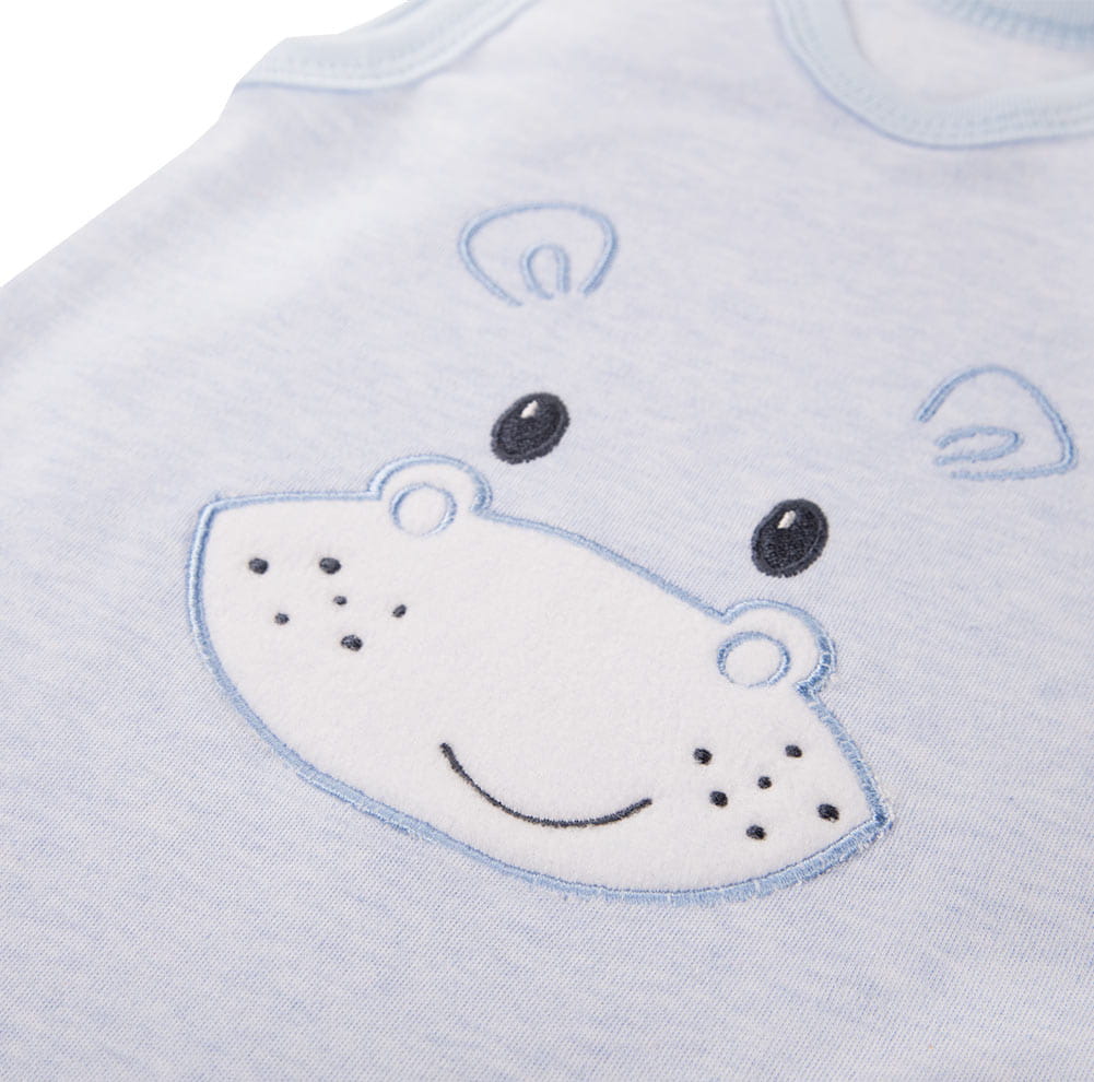 Blauer Schlafstrampler aus der Kollektion „Baby Love“, genäht aus weichem und angenehm anzufassendem meliertem Baumwollstrick. Auf der Vorderseite des Schlafstramplers befindet sich eine große Stickerei mit einem niedlichen Tierchen. Der Schnitt ermöglicht ein vollständiges Aufknöpfen an den Schultern und im Schritt, wodurch das Kleidungsstück funktional und bequem ist. Der Baby-Schlafstrampler ist mit einem weichen Saum versehen. Trotz ihres Namens werden Schlafstrampler nicht nur zum Schlafen angezogen. Zusammen mit dem Jäckchen aus derselben Kollektion bilden sie ein hübsches Outfit für unterwegs. Die Babykleidung von Eevi wird mit Sorgfalt für den Komfort und die Sicherheit der Haut Ihres Kindes hergestellt. Warum vertrauen wir der Marke Eevi seit Jahren so sehr? Die Produkte werden mit Präzision und unter Verwendung von Materialien höchster Qualität genäht. Bei der Herstellung von Babykleidung verwenden wir ausschließlich ökologische Farben, die für die Haut von Kindern und Babys unbedenklich sind. Die Stickereien in unseren Produkten sind von innen gesichert, damit sie die empfindliche Haut des Kindes nicht reizen. Alle Druckknöpfe und Verschlüsse, die wir in unseren Produkten verwenden, sind nickelfrei. Der von uns angebotene Schlafstrampler ist zertifiziert: „Sicher für Kinder” „Sicher für Babys” Material: 100 % hochwertige Baumwolle Alter des Kindes: 0 bis 6 Monate Produkt: 100 % POLNISCH
