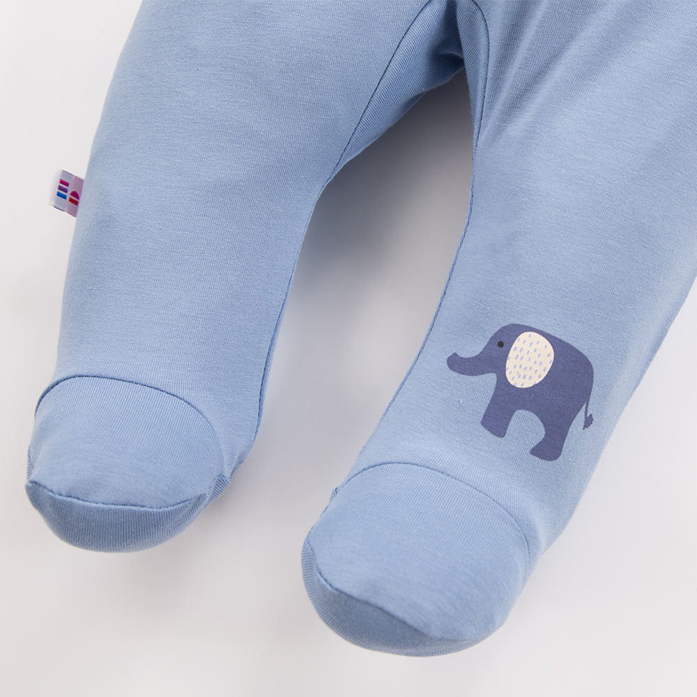Blaue Halbstrampler mit Elefant. Halbstrampler eignen sich hervorragend für jede Jahreszeit. Sie sind eine sehr gute Wahl für Babys, die im Winter oder Sommer geboren werden. Freiliegende Füße sind ein Problem für alle Eltern. Söckchen rutschen herunter, und wir Eltern möchten, dass unser Baby warm hat und seine Füße nicht frieren. Alter des Kindes: Von 0 bis 6 Monaten Kollektion: Elephant Material: 95 % hochwertige Baumwolle, 5 % Elasthan Struktur/Materialart: Strickware Pflegehinweise: Maschinenwäsche bei 40 °C, nicht im Wäschetrockner trocknen Muster: Farbe – einfarbig blau Verschluss: keiner Verarbeitung: Weicher Bündchen Herkunft: 100 % polnisches Produkt Zertifikate: „Sicher für Kinder”, „Sicher für Babys” Die Babykleidung von Eevi wird mit Blick auf den Komfort und die Sicherheit der Haut Ihres Kindes hergestellt. Warum vertrauen wir der Marke Eevi seit Jahren so sehr? Die Produkte werden mit Sorgfalt und unter Verwendung von Materialien höchster Qualität genäht. Bei der Herstellung von Babykleidung verwenden wir ausschließlich ökologische Farben, die für die Haut von Kindern und Babys unbedenklich sind. Die Stickereien in unseren Produkten sind von innen gesichert, damit sie die empfindliche Haut des Kindes nicht reizen. Alle Druckknöpfe und Verschlüsse, die wir in unseren Produkten verwenden, sind nickelfrei.