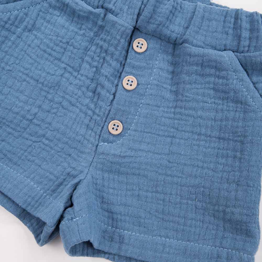 Blaue Musselin-Shorts mit Knöpfen – Kollektion Ceremony