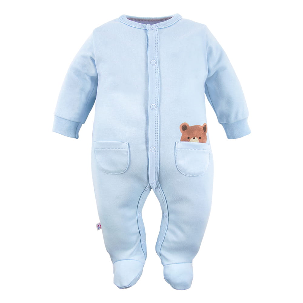 Blauer Strampler mit Füßchen und Teddybär. Strampler mit Füßchen sind ein Muss in jeder Babyausstattung. Ideal für Kinder, die sich nachts im Schlaf aufdecken. In unserem Shop sind Strampler bis Größe 104 erhältlich. Mütter wählen meist Strampler für ihre Kleinen. Baby-Strampler sind sowohl für Mütter als auch für Kinder sehr bequem anzuziehen. Alter des Kindes: Von 0 bis 9 Monaten Kollektion: Cars&Bears Material: 100 % hochwertige Baumwolle Struktur/Materialart: Strickware Pflegehinweise: Maschinenwäsche bei 40 °C, nicht im Wäschetrockner trocknen Muster: Einfarbig – blau Ärmel: Langarm Verschluss: Über die gesamte Länge Verarbeitung: Weiche Paspelierung Herkunft: 100 % polnisches Produkt Zertifikate: „Sicher für Kinder”, „Sicher für Babys” Die Babykleidung von Eevi wird mit Blick auf den Komfort und die Sicherheit der Haut Ihres Kindes hergestellt. Warum vertrauen wir der Marke Eevi seit Jahren so sehr? Die Produkte werden mit Sorgfalt und unter Verwendung von Materialien höchster Qualität genäht. Bei der Herstellung von Babykleidung verwenden wir ausschließlich ökologische Farben, die für die Haut von Kindern und Babys unbedenklich sind. Die Stickereien in unseren Produkten sind von innen gesichert, damit sie die empfindliche Haut des Kindes nicht reizen. Alle Druckknöpfe und Verschlüsse, die wir in unseren Produkten verwenden, sind nickelfrei.