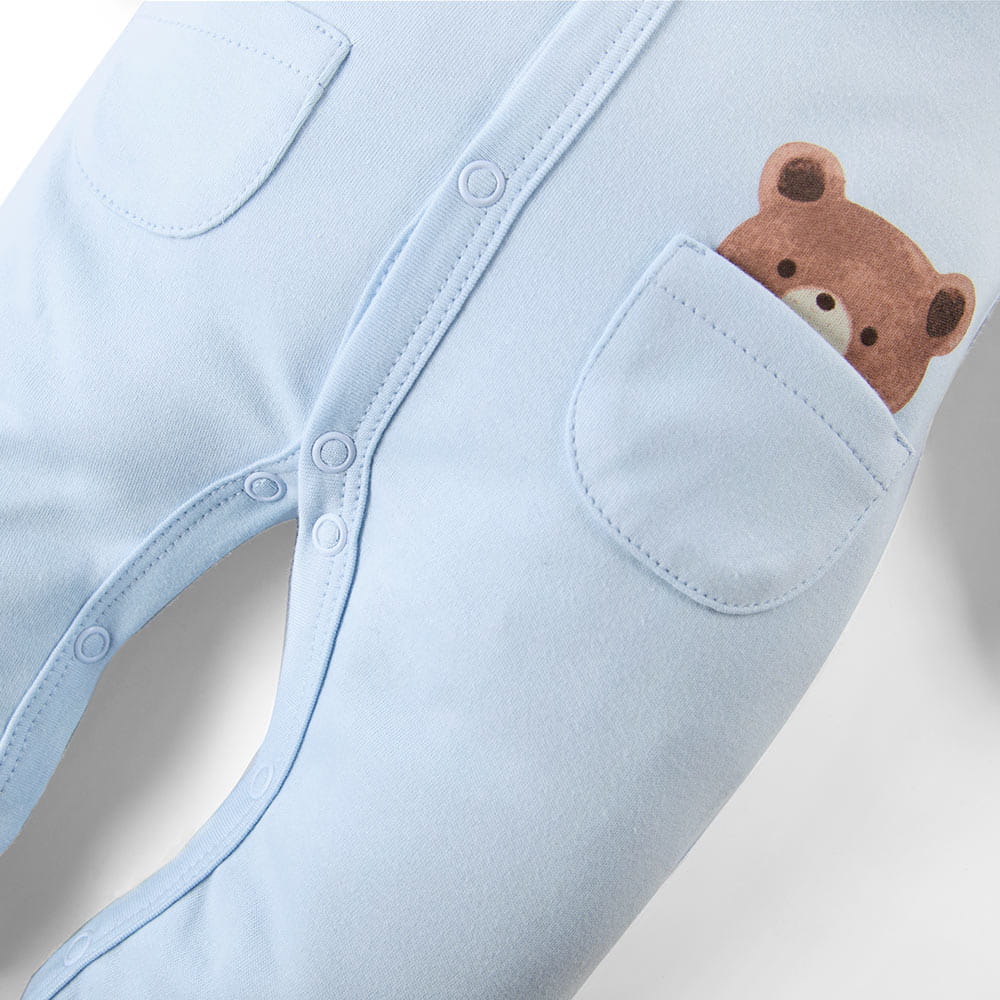 Blauer Baby-Strampler mit Teddybär