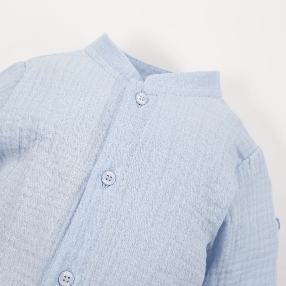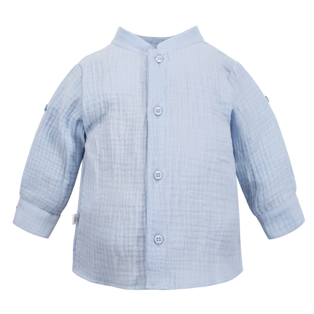 Blaues Musselin-Hemd für Kinder mit Stehkragen