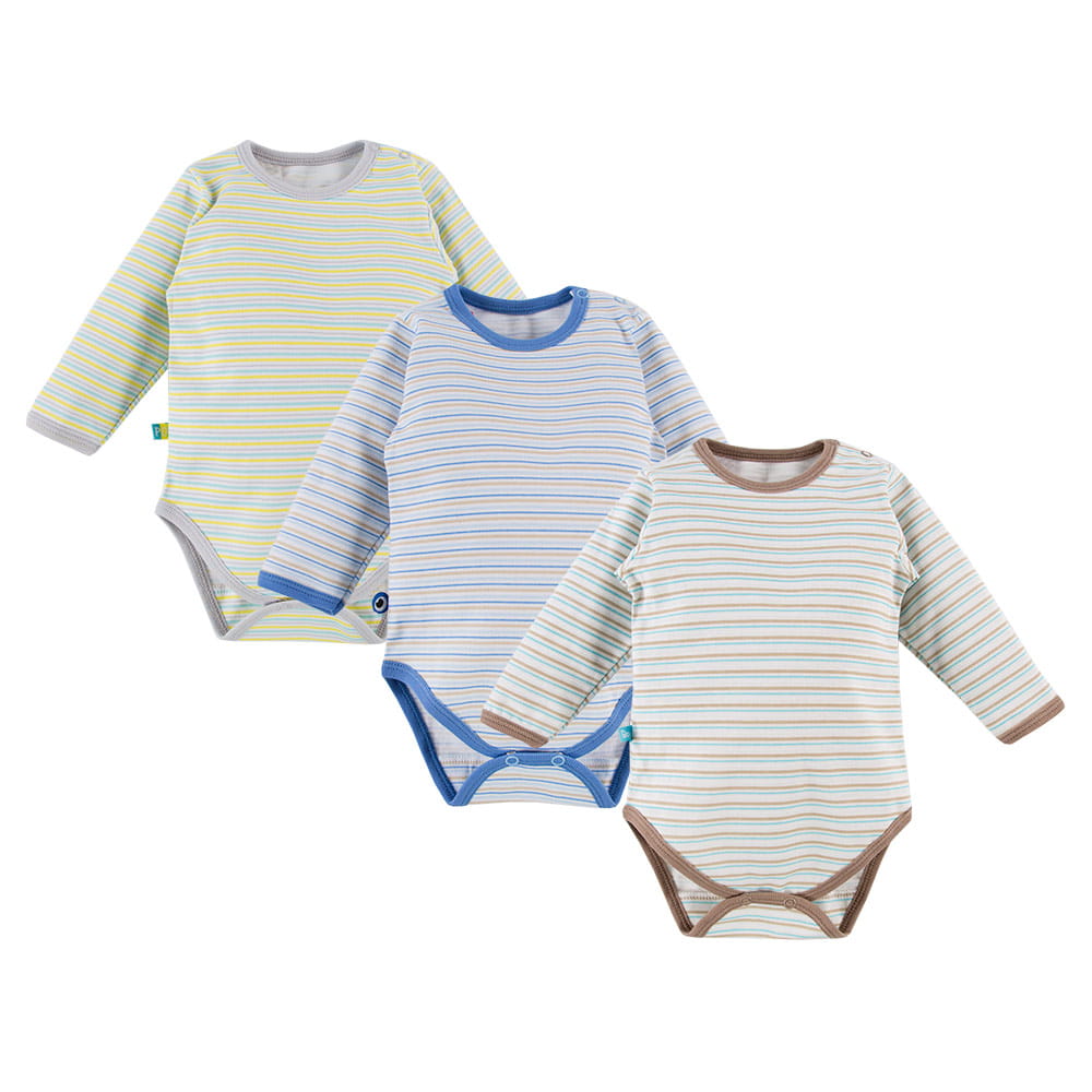3er-Pack Langarm-Babybodys aus der Kollektion „RUN&FUN” aus weichem und angenehm zu tragendem Baumwollstrick mit Streifenmuster. Die Babybodys werden im 3er-Pack verkauft. Der Schnitt ermöglicht das Öffnen an den Schultern und im Schritt, wodurch der Body funktional und bequem ist. Der Body ist mit einem weichen Saum versehen. Babybodys eignen sich ideal für die ersten Lebensmonate des Kindes und gehören zu den von Müttern am häufigsten gewählten Produkten. Die Babykleidung von Eevi wird mit Sorgfalt für den Komfort und die Sicherheit der Haut Ihres Kindes hergestellt. Warum vertrauen Mütter der Marke Eevi seit Jahren so sehr? Die Produkte werden mit Präzision und unter Verwendung von Materialien höchster Qualität genäht. Bei der Herstellung von Babykleidung verwenden wir ausschließlich ökologische Farben, die für die Haut von Kindern und Babys unbedenklich sind. Die Stickereien in unseren Produkten sind von innen gesichert, damit sie die empfindliche Haut des Kindes nicht reizen. Alle Druckknöpfe und Verschlüsse, die wir in unseren Produkten verwenden, sind nickelfrei. Die von uns angebotenen Babybodys sind zertifiziert: „Sicher für Kinder” „Sicher für Babys” Material: 100 % hochwertige Baumwolle Alter des Kindes: von 9 Monaten bis 2 Jahren PRODUKT 100 % POLNISCH