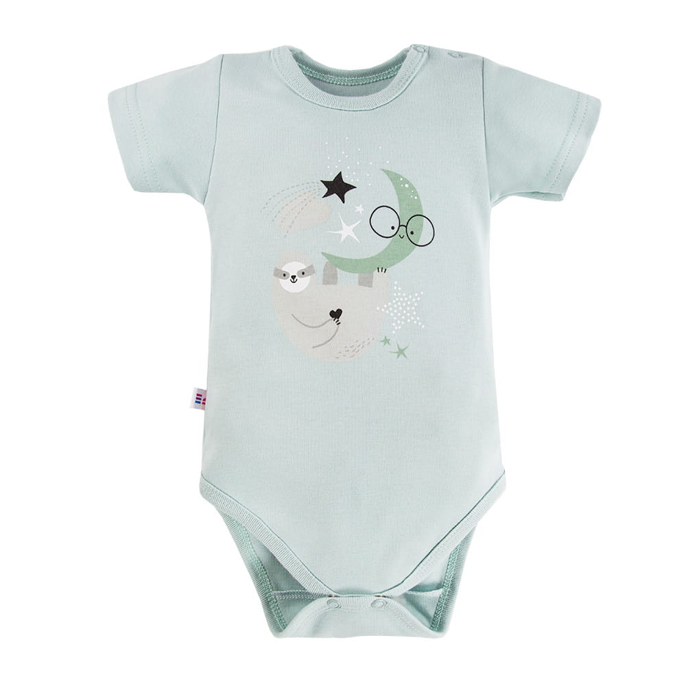Mintfarbener Baby-Body mit kurzen Ärmeln und Faultier – Mellow Kollektion