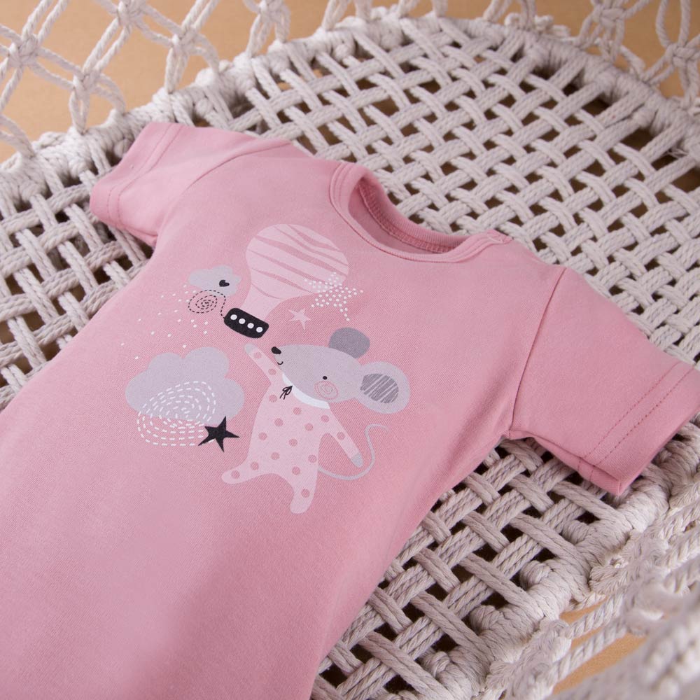 Rosa Baby-Body mit kurzen Ärmeln und Maus – Mellow Kollektion