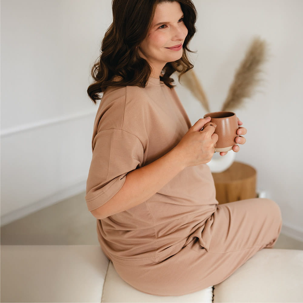 Die beigen Damen Sweatpants Eevi for Women vereinen Komfort, natürliche Farbgebung und Alltagstauglichkeit. Der lockere Schnitt und der weiche, atmungsaktive Jersey machen sie ideal für Zuhause und für unterwegs. Dank des elastischen Bundes eignen sich die Hosen auch während der Schwangerschaft und nach der Geburt und bieten maximalen Tragekomfort ohne Druck.Warum die beigen Sweatpants von Eevi wählen?
