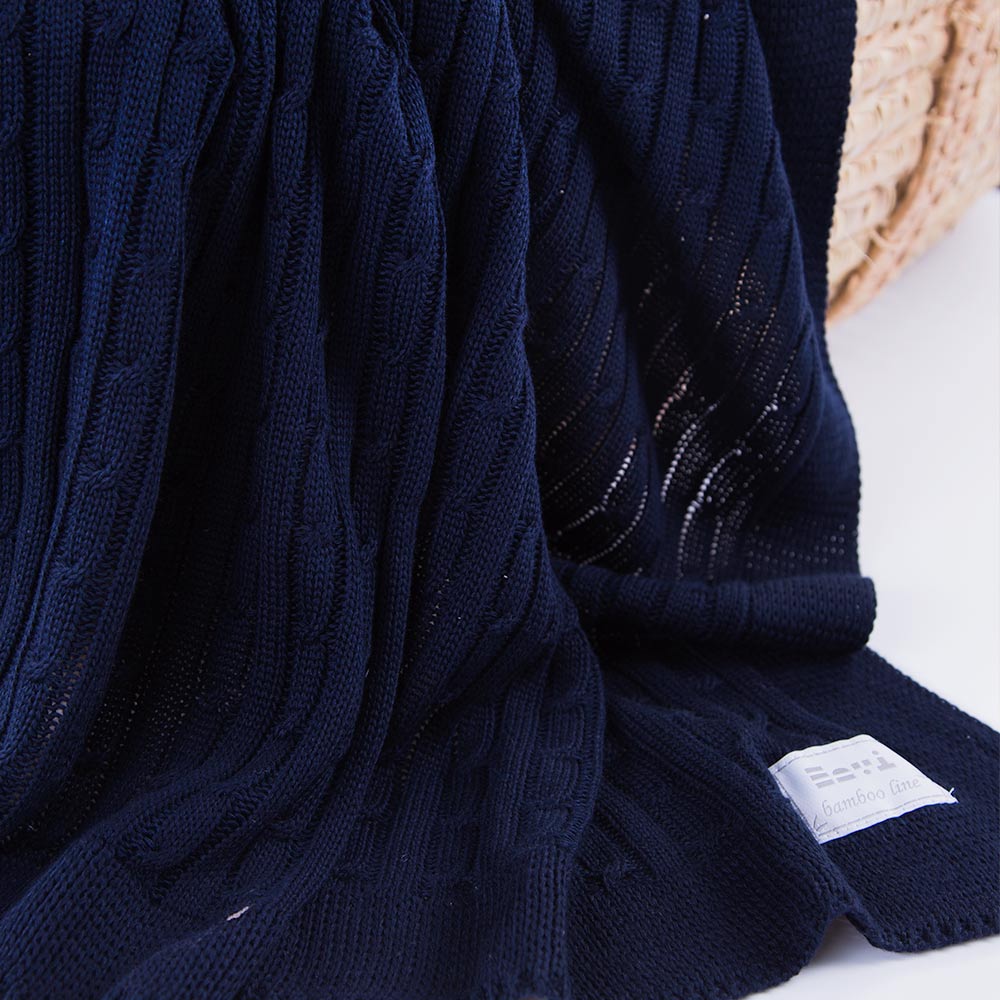 Dunkelblaue Bambus-Babydecke 100x75 cm
