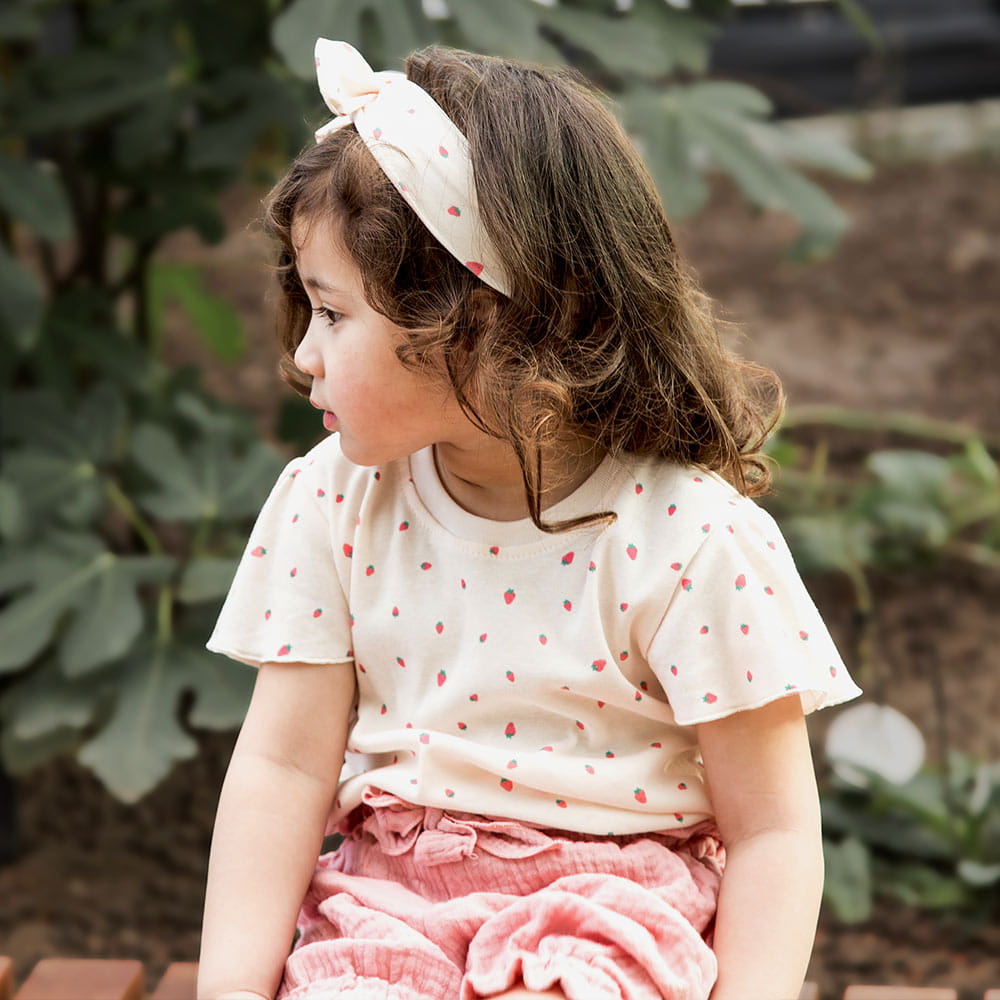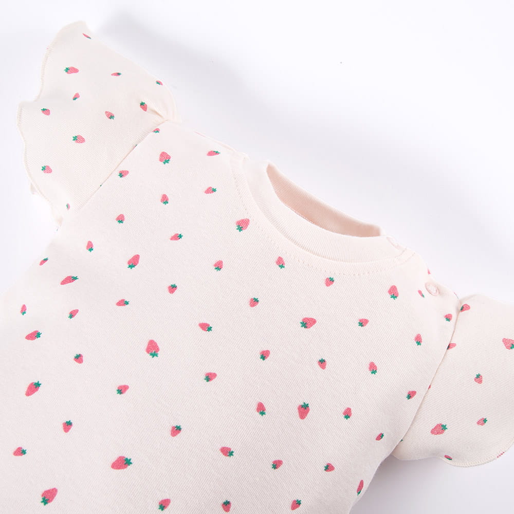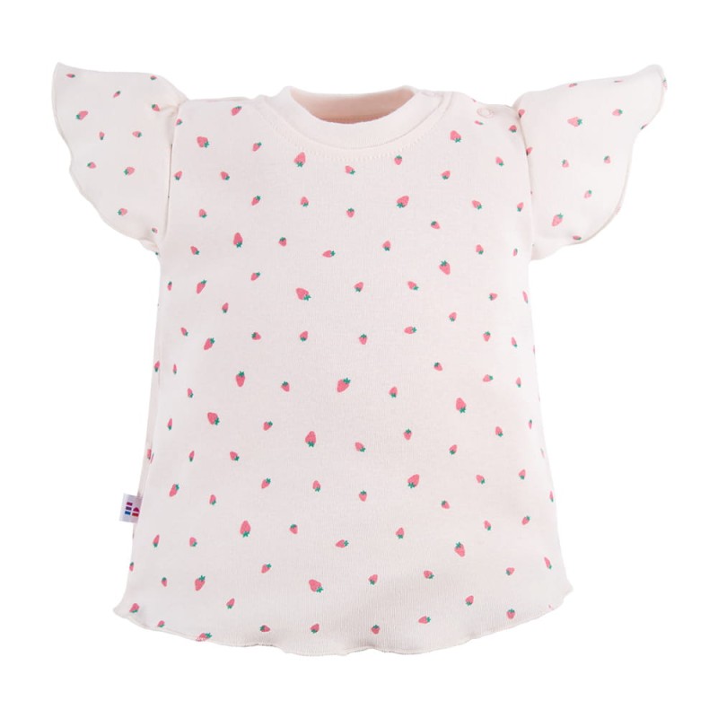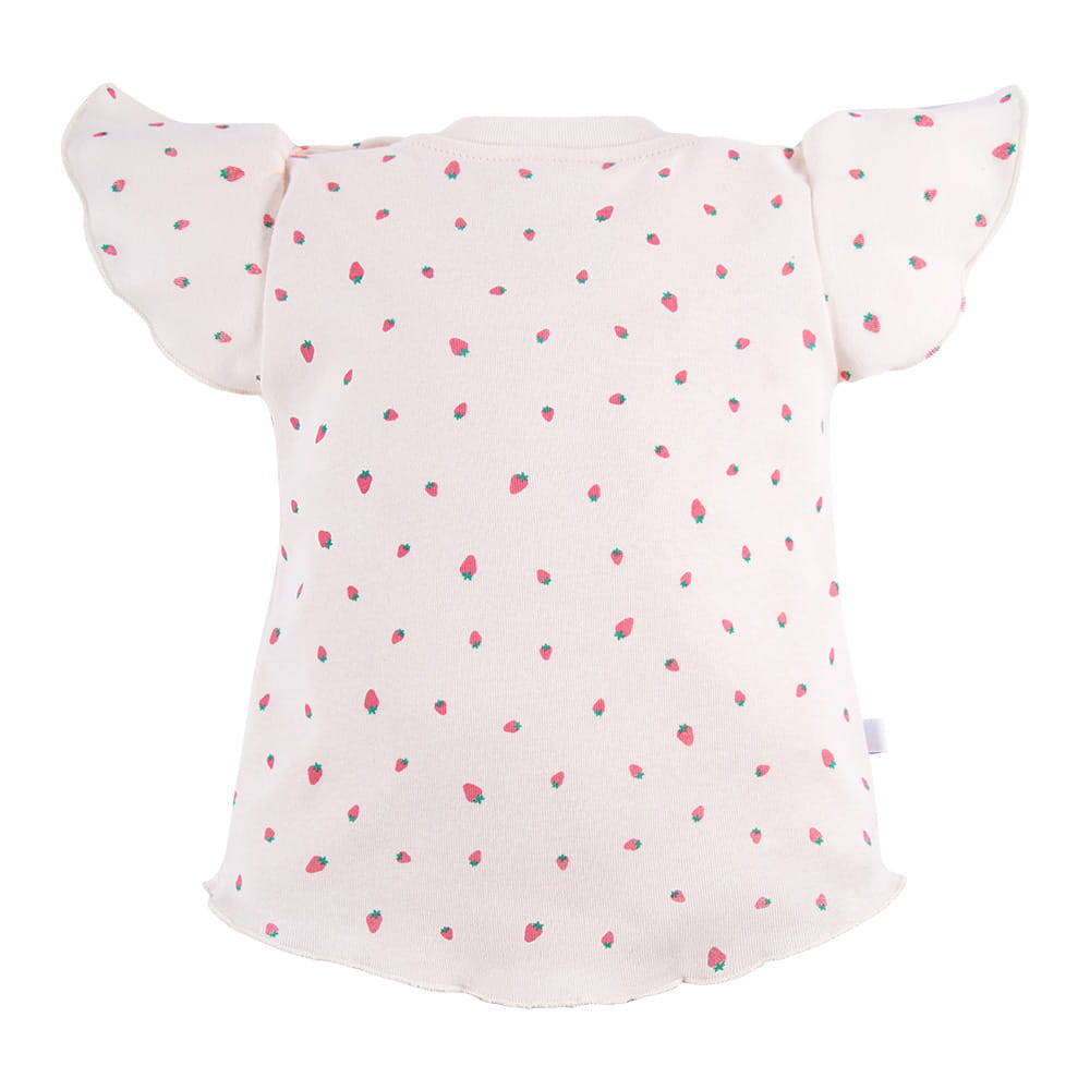 Ecru-Bluse für Mädchen mit Erdbeermuster und dekorativen Ärmeln