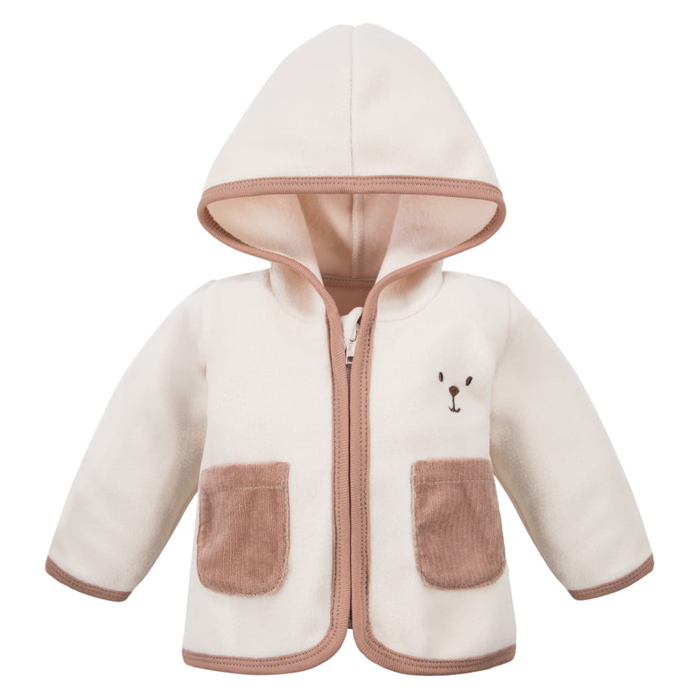 Ecrufarbene Kinderfleecejacke mit Kapuze
