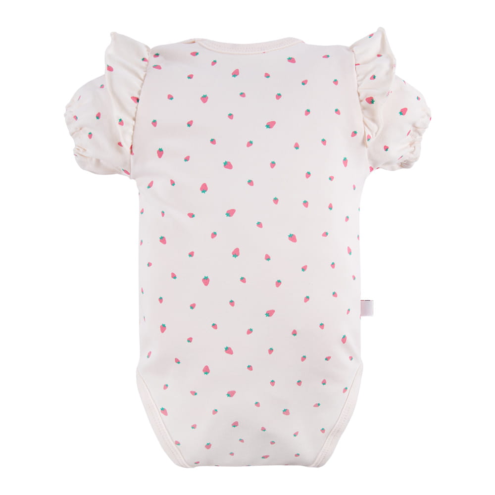 Ecrufarbener Kurzarm-Body mit Erdbeermuster