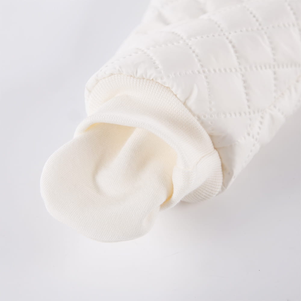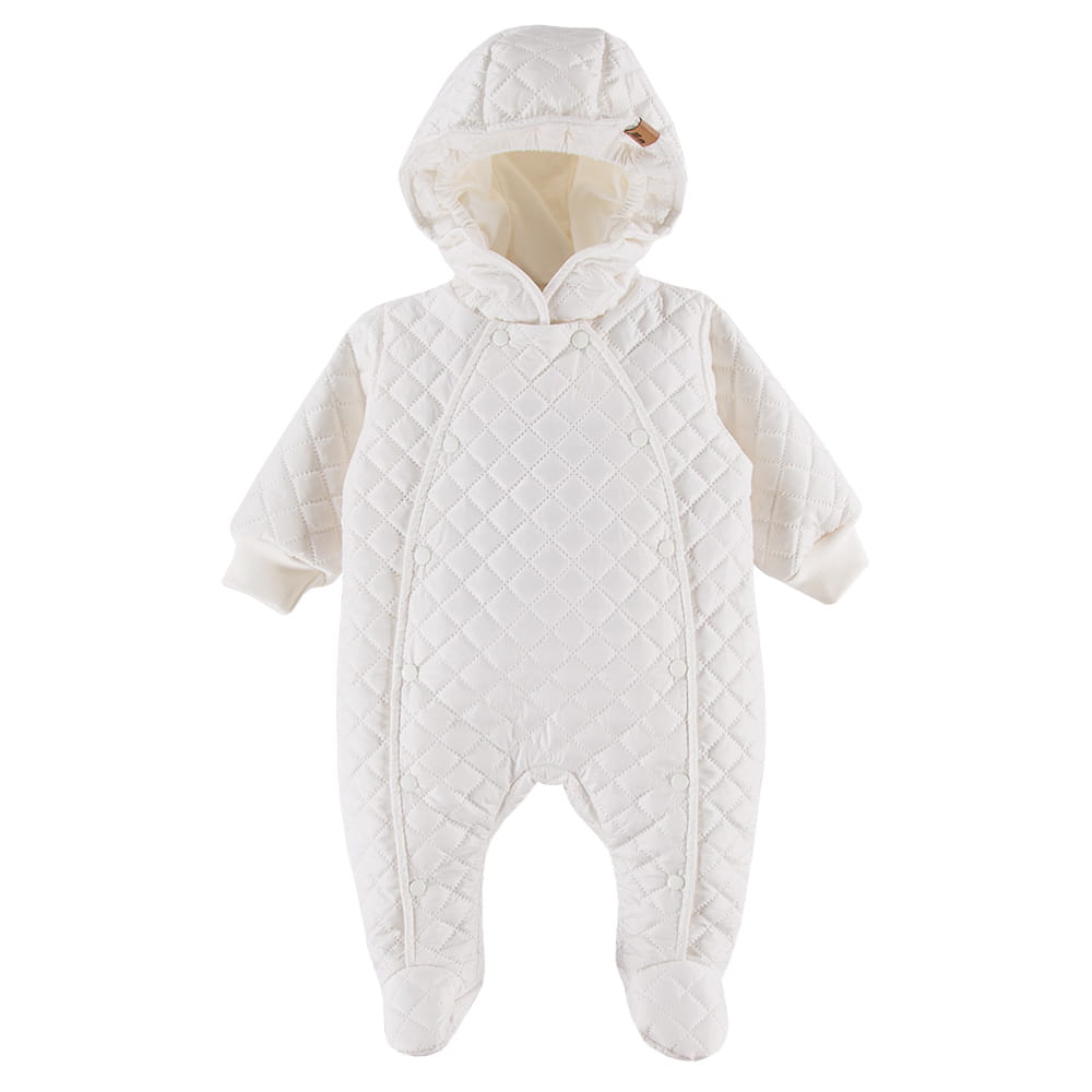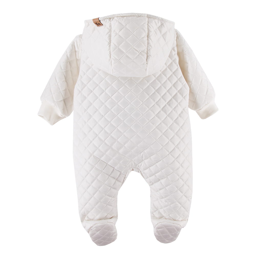Ecrufarbener Steppoverall mit Kapuze