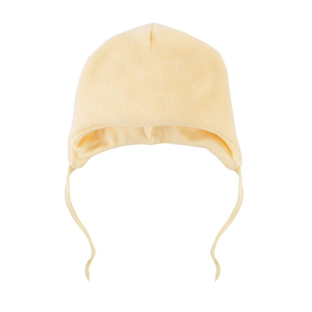 Gelbe Kinder-Mütze mit Bindeband. Die Kinder-Mütze besteht aus zwei Lagen Baumwolle und Fleece. Das Bindeband verhindert, dass die Mütze verrutscht. Der Schnitt der Mütze ist an den Ohren verlängert, sodass diese immer vor Kälte geschützt sind. Alter des Kindes: Von 0 Monaten bis 4 Jahren Maße flach liegend (Breite x Höhe): Kollektion: RUN&FUN Material: Futter: 100 % hochwertige Baumwolle, Obermaterial: 100 % Polyester Struktur/Materialart: Strickware Pflegehinweise: Maschinenwäsche bei 40 °C, nicht im Wäschetrockner trocknen Muster: Einfarbig – gelb Herkunft: POLNISCHES PRODUKT Zertifikate: „Sicher für Kinder”, „Sicher für Babys” Die Babykleidung von Eevi wird mit Blick auf den Komfort und die Sicherheit der Haut Ihres Kindes hergestellt. Warum vertrauen wir der Marke Eevi seit Jahren so sehr? Die Produkte werden mit Sorgfalt und unter Verwendung von Materialien höchster Qualität genäht. Bei der Herstellung von Babykleidung verwenden wir ausschließlich ökologische Farben, die für die Haut von Kindern und Babys unbedenklich sind. Die Stickereien in unseren Produkten sind von innen gesichert, damit sie die empfindliche Haut des Kindes nicht reizen. Alle Druckknöpfe und Verschlüsse, die wir in unseren Produkten verwenden, sind nickelfrei.