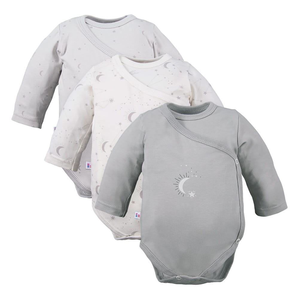 Graue Baby Wickelbodys 3er-Set mit Sternen – Kollektion Petite