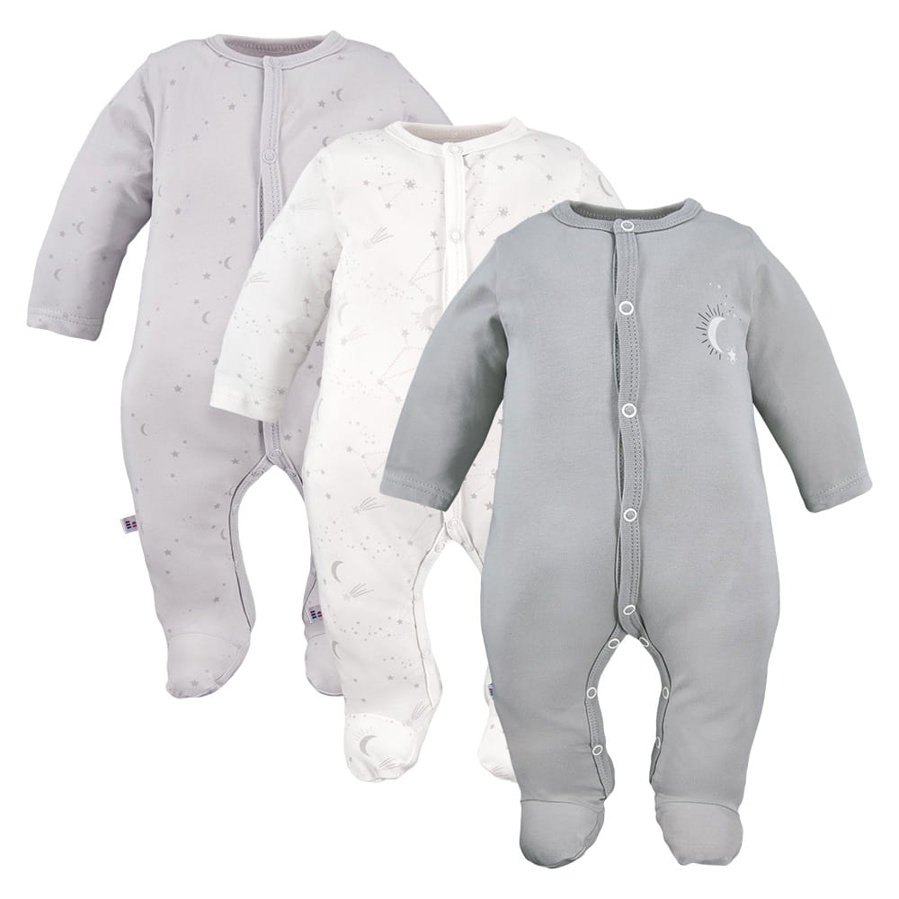 Graue/ecrufarbene Baby-Strampler im 3er-Pack mit Sternchenmotiv