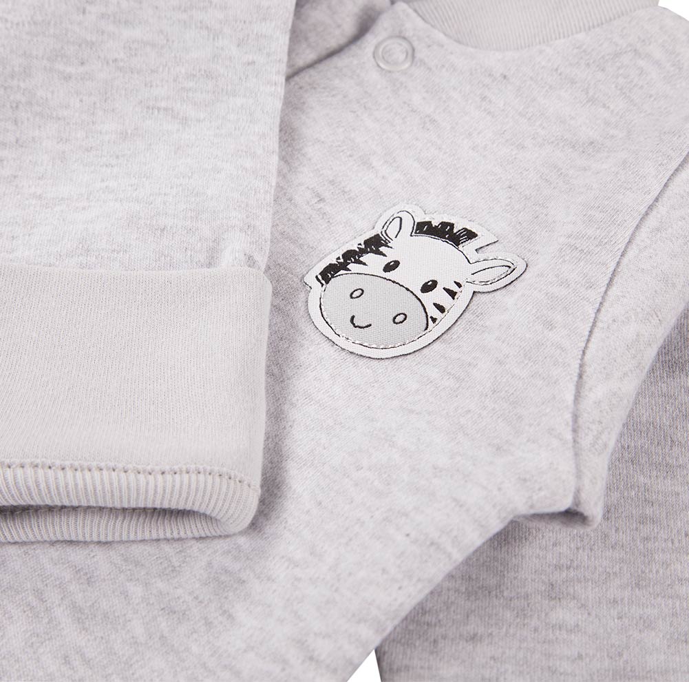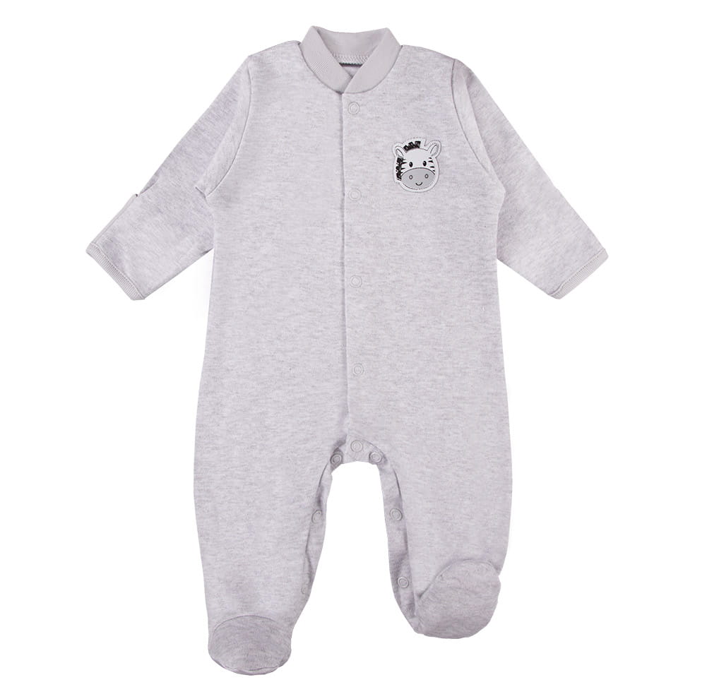 Grauer Baby-Strampler mit Kratzhandschuh aus der Kollektion „Baby Love“, genäht aus weichem und angenehm anzufassendem meliertem Streifenstoff. Auf der Vorderseite des Stramplers befindet sich ein Aufnäher mit einem niedlichen Tierchen. Der Schnitt ermöglicht ein vollständiges Aufknöpfen, wodurch das Kleidungsstück funktional und bequem ist. Der Strampler ist mit einer kontrastierenden Paspelierung verziert. An den Ärmeln sind Kratzfutter aufgenäht, die umgeschlagen werden können, um die Hände des Kindes zu schützen. Baby-Strampler eignen sich ideal für die ersten Lebensmonate des Kindes. Sie können als Schlafanzug oder Ausgehkleidung verwendet werden. Die Babykleidung von Eevi wird mit Sorgfalt für den Komfort und die Sicherheit der Haut Ihres Kindes hergestellt. Warum vertrauen wir der Marke Eevi seit Jahren so sehr? Die Produkte werden mit Präzision und unter Verwendung von Materialien höchster Qualität genäht. Bei der Herstellung von Babykleidung verwenden wir ausschließlich Farben ökologische Farben, die für die Haut von Kindern und Babys unbedenklich sind. Die Stickereien in unseren Produkten sind von innen gesichert, damit sie die empfindliche Haut des Kindes nicht reizen. Alle Druckknöpfe und Verschlüsse, die wir in unseren Produkten verwenden, sind nickelfrei. Der von uns angebotene Strampler ist zertifiziert: „Sicher für Kinder” „Sicher für Säuglinge” Zusammensetzung: 100 % hochwertige Baumwolle Alter des Kindes: von 0 bis 6 Monaten PRODUKT 100 % POLNISCH