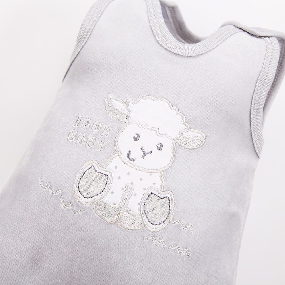 Graues Baby-Set mit Schafstickerei – Newborn Kollektion