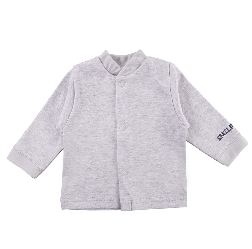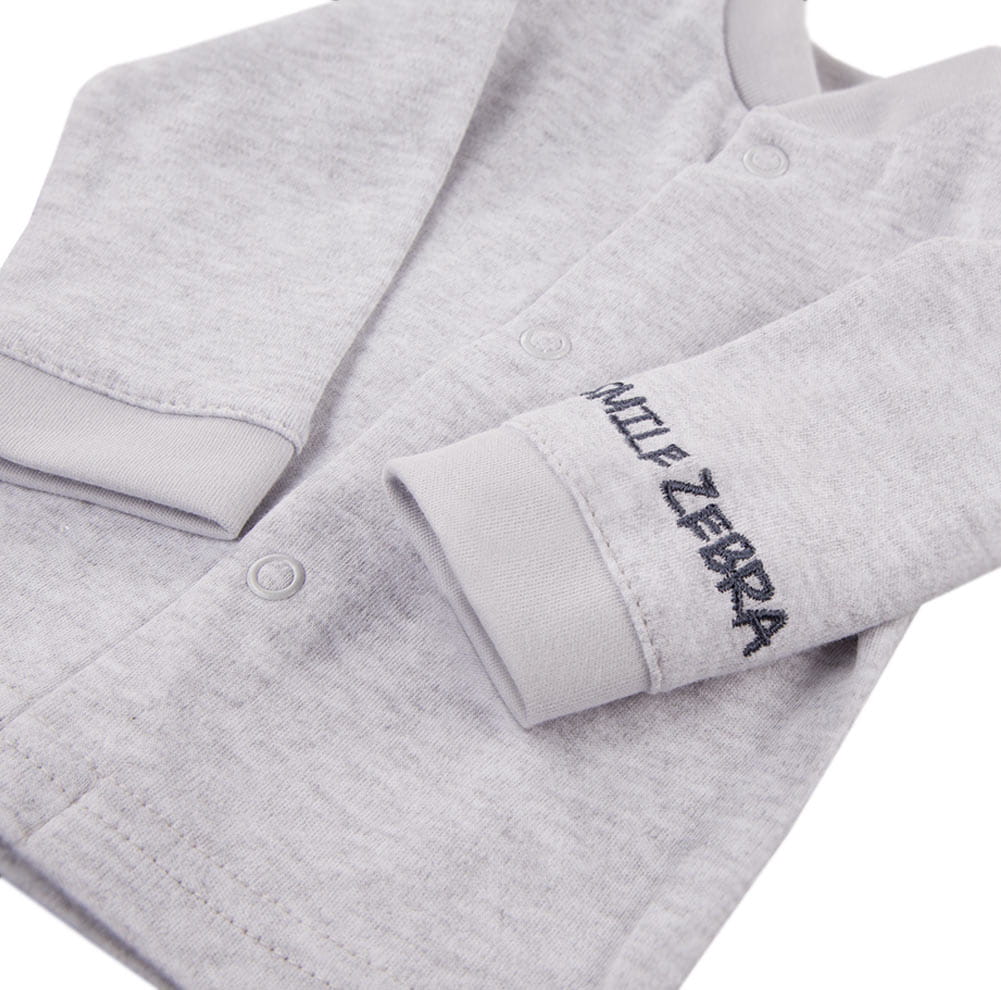 Graues Jäckchen aus der Kollektion „Baby Love“, genäht aus weichem und angenehm anzufassendem Melange-Strickstoff. Das Jäckchen hat eine Stickerei auf dem Ärmel. Der Schnitt ermöglicht ein vollständiges Aufknöpfen, wodurch das Kleidungsstück funktional und bequem ist. Baby-Jäckchen eignen sich ideal für die ersten Lebensmonate des Kindes und bilden zusammen mit Baby-Schlafstramplern ein perfektes Outfit für unterwegs. Die Babykleidung von Eevi wird mit Sorgfalt für den Komfort und die Sicherheit der Haut Ihres Kindes hergestellt. Warum vertrauen wir der Marke Eevi seit Jahren so sehr? Die Produkte werden mit Präzision und unter Verwendung von Materialien höchster Qualität genäht. Bei der Herstellung von Babykleidung verwenden wir ausschließlich Farben ökologische Farben, die für die Haut von Kindern und Babys unbedenklich sind. Die Stickereien in unseren Produkten sind von innen gesichert, damit sie die empfindliche Haut des Kindes nicht reizen. Alle Druckknöpfe und Verschlüsse, die wir in unseren Produkten verwenden, sind nickelfrei. Das von uns angebotene Baby-Jäckchen ist zertifiziert: „Sicher für Kinder” „Sicher für Säuglinge” Zusammensetzung: 100 % hochwertige Baumwolle Alter des Kindes: von 0 bis 6 Monaten PRODUKT 100 % POLNISCH