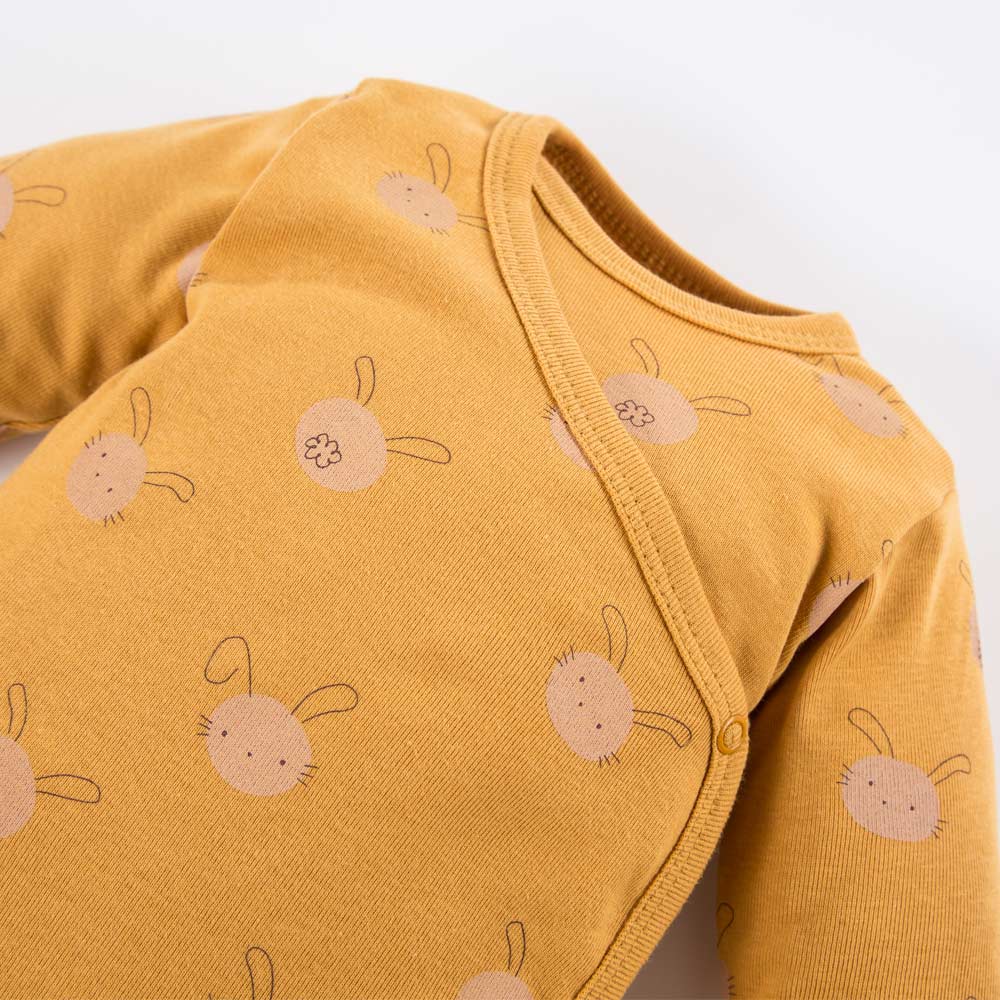 Wickelbody mit niedlichem Hasenmotiv. Der Babybody ist ideal für Kinder bis zu 3 Jahren. Mütter wählen meistens Bodys für ihre Kleinen. Er ist ein Must-have für jede Baby- oder Kindergartenerstattung. Alter des Kindes: Von 7 Monaten bis 3 Jahren Kollektion: Animals Material: 95 % hochwertige Baumwolle, 5 % Elasthan Struktur/Materialart: Strickware Pflegehinweise: Maschinenwäsche bei 40 °C, nicht im Wäschetrockner trocknen Muster: Farbe – honigfarben Ärmel: Langarm Verschluss: Am Schulterblatt Verarbeitung: Weiche Paspel Herkunft: 100 % polnisches Produkt Zertifikate: „Sicher für Kinder”, „Sicher für Babys” Die Babykleidung von Eevi wird mit Blick auf den Komfort und die Sicherheit der Haut Ihres Kindes hergestellt. Warum vertrauen wir der Marke Eevi seit Jahren so sehr? Die Produkte werden mit Sorgfalt und unter Verwendung von Materialien höchster Qualität genäht. Bei der Herstellung von Babykleidung verwenden wir ausschließlich ökologische Farben, die für die Haut von Kindern und Babys unbedenklich sind. Die Stickereien in unseren Produkten sind von innen gesichert, damit sie die empfindliche Haut des Kindes nicht reizen. Alle Druckknöpfe und Verschlüsse, die wir in unseren Produkten verwenden, sind nickelfrei.