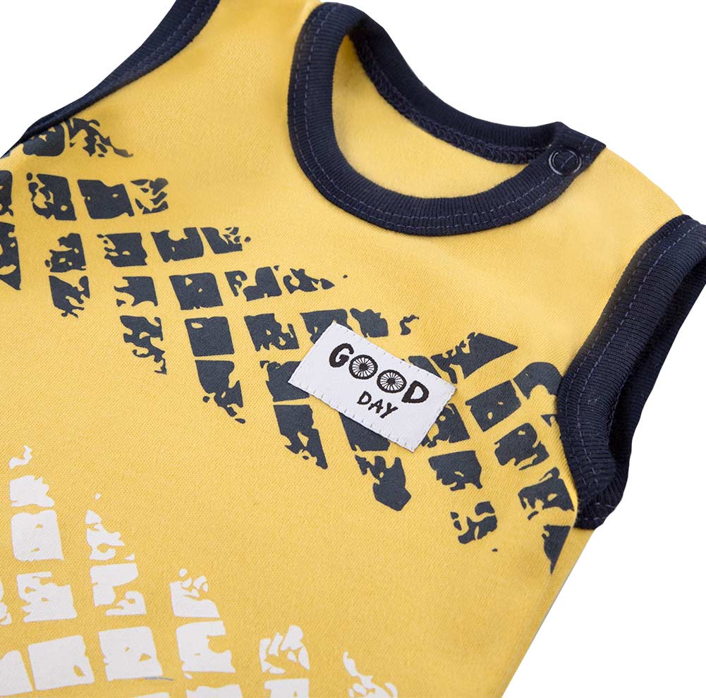 Jungen-Set gelber ärmelloser Body und Shorts – Kollektion Bike