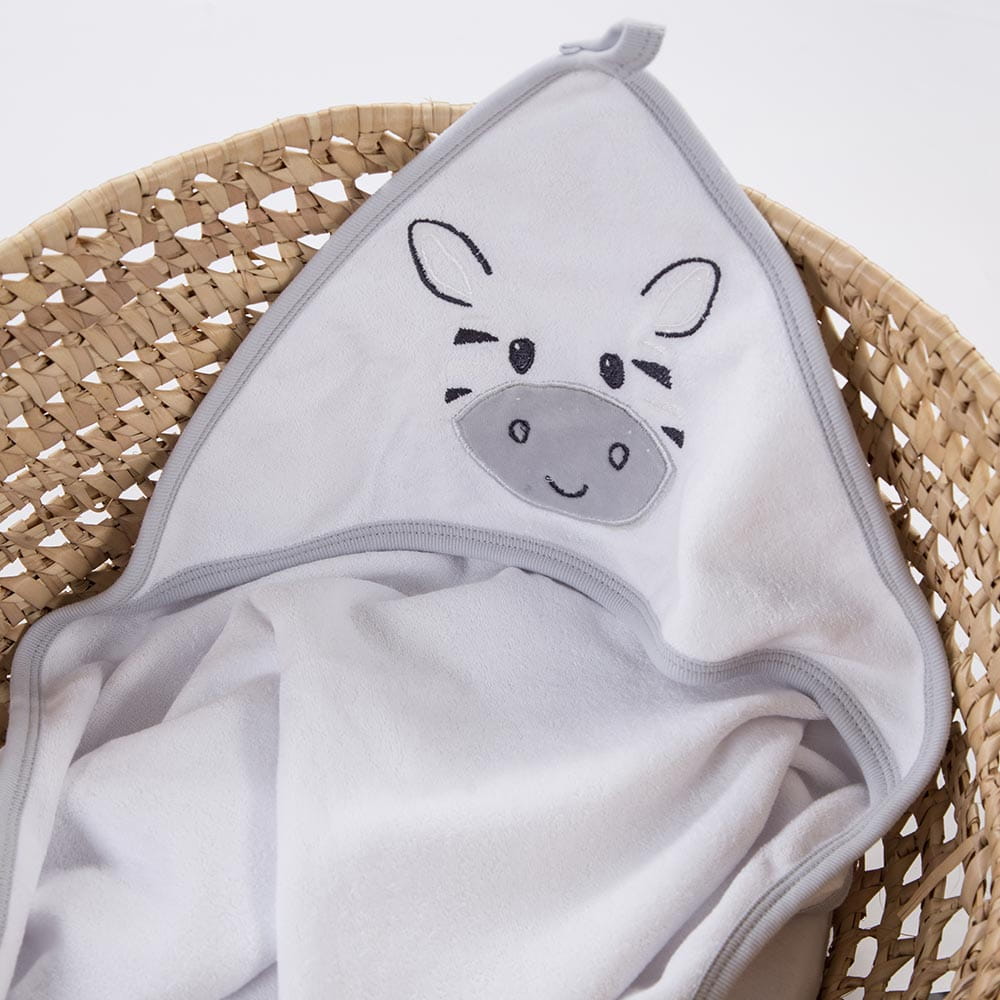 Baby Kapuzenhandtuch weiß mit Zebra – Baby Love