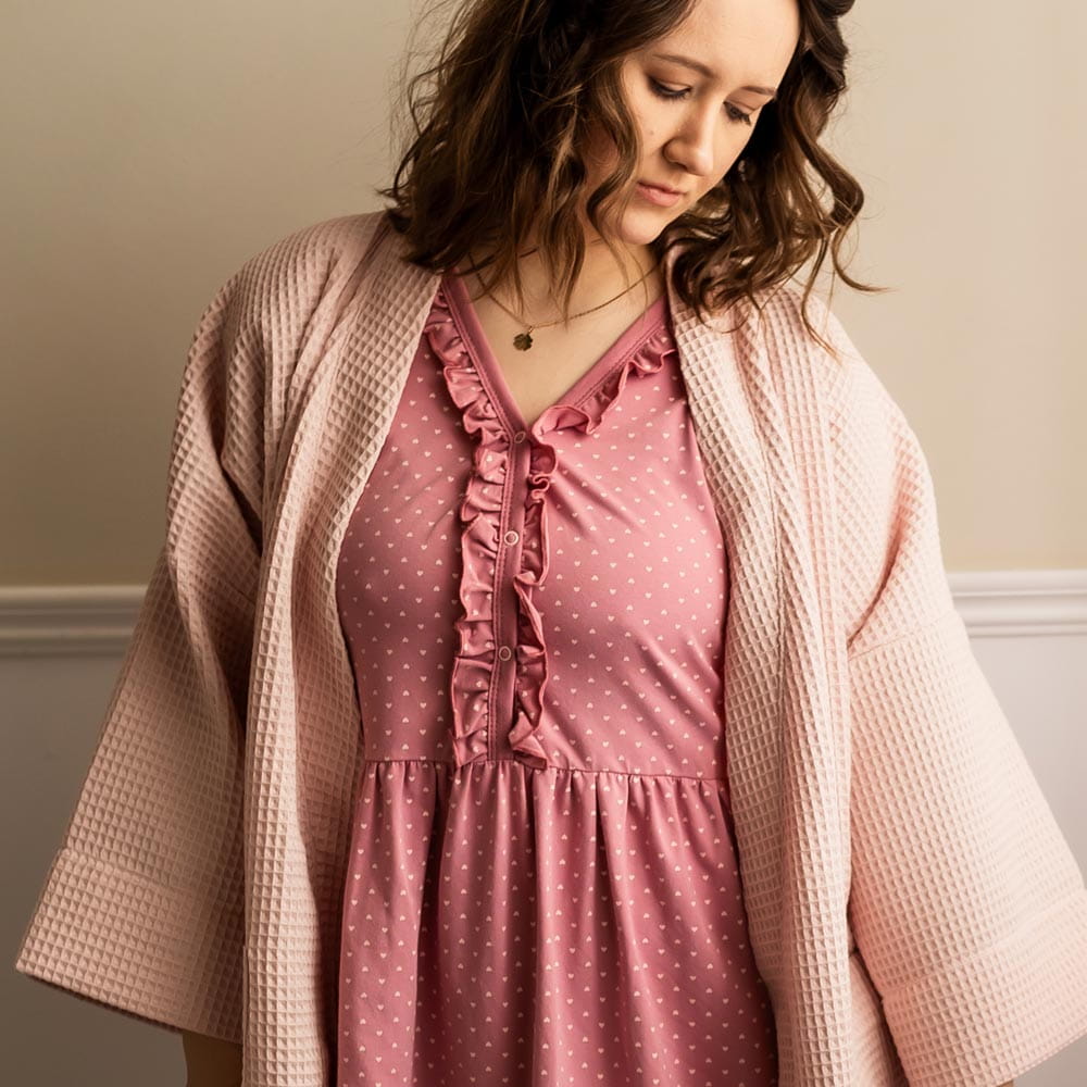 Kimono-Bademantel für Damen aus Waffelstoff in Rosa