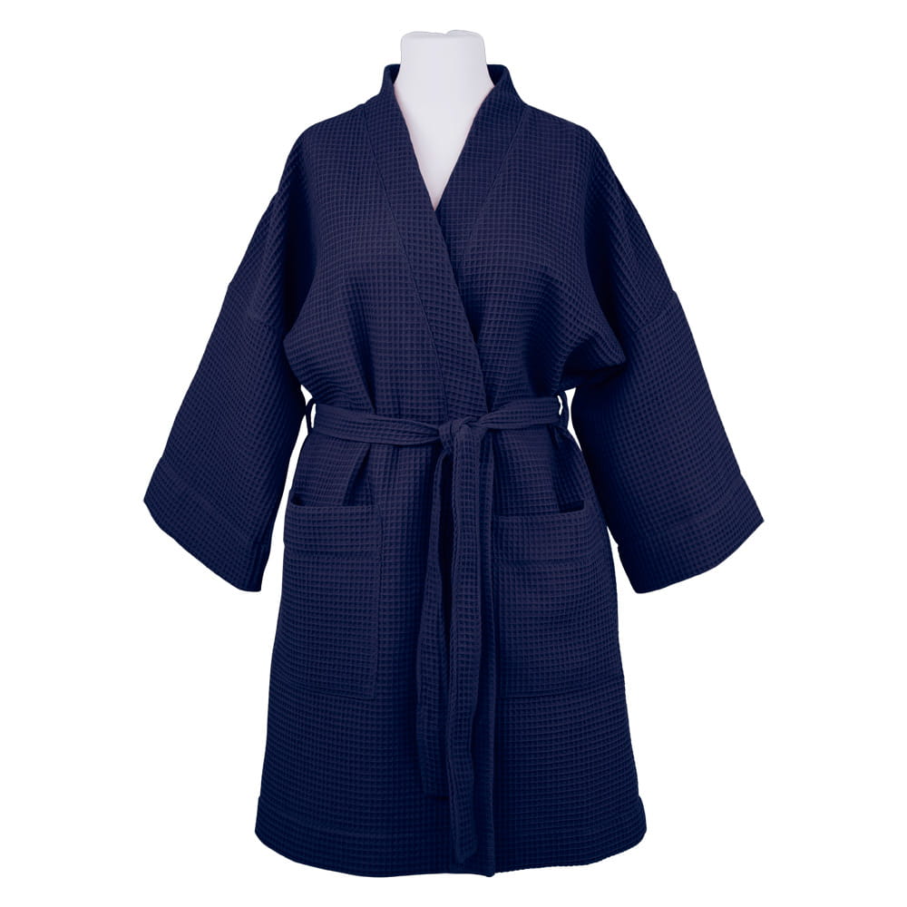 Kimono-Umstandsbademantel aus Waffelstoff, dunkelblau